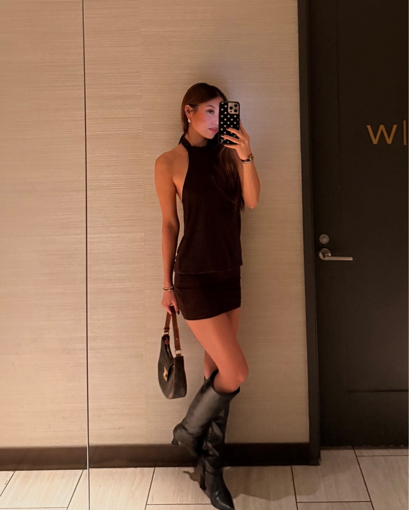Brown Halter Neck Open Back Mini Dress by Windsor - Pickle