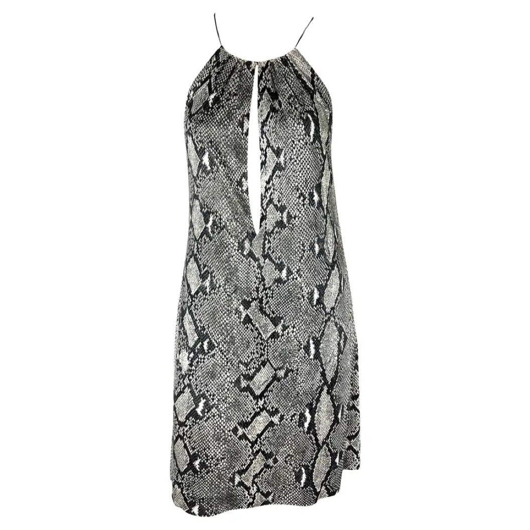 S/S 2000 Gucci by Tom Ford Snake Print Viscose Leather Strap Plunging Dress
