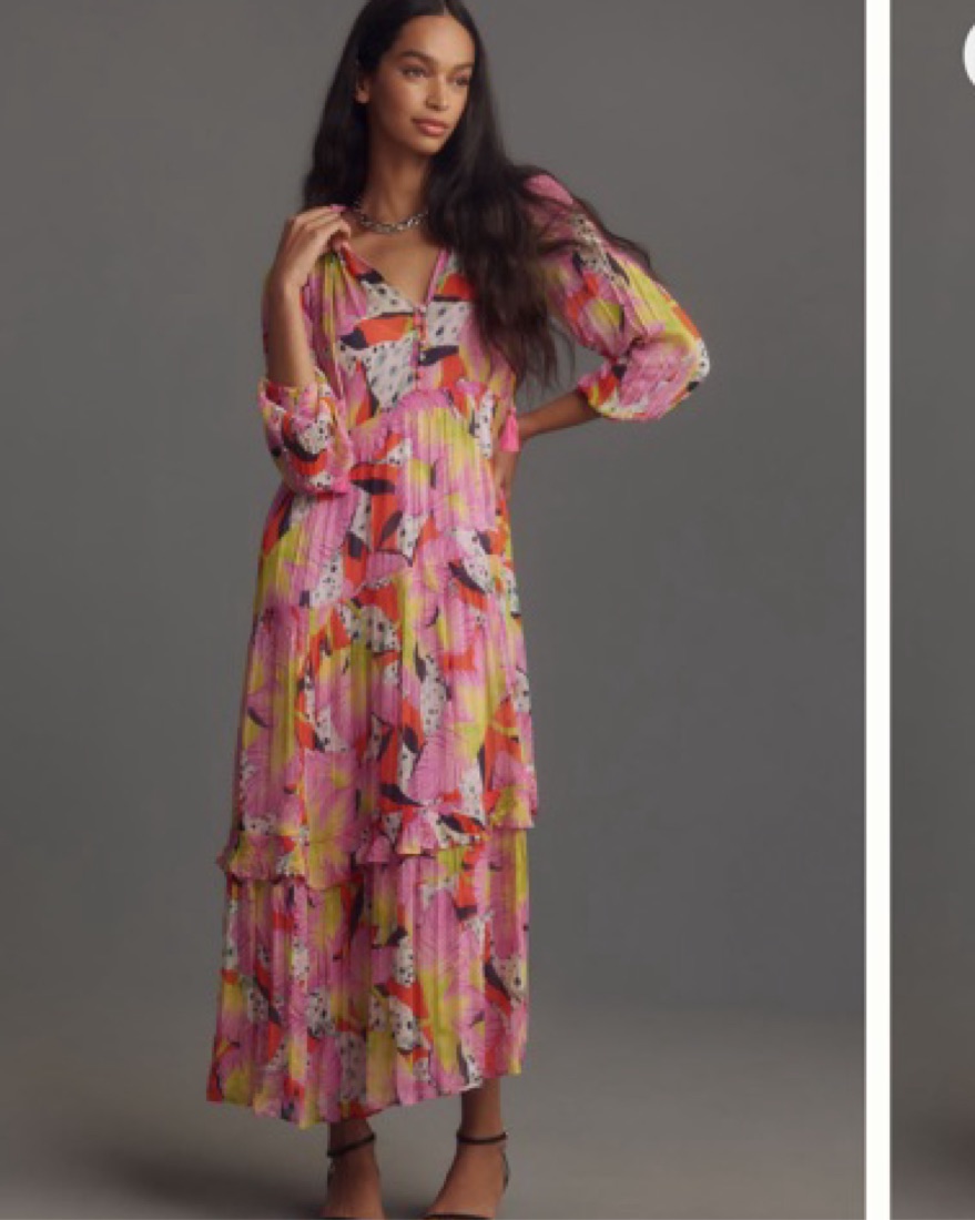 First photo is the color/pattern of the actual dress, second two are for reference of style and fit. Includes slip dress underneath
