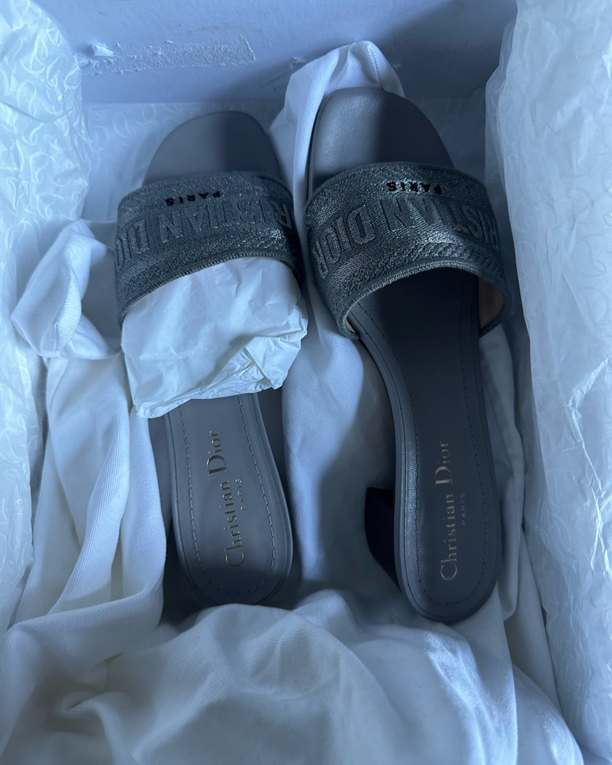 Christian Dior Silver Dway Heeled Slide