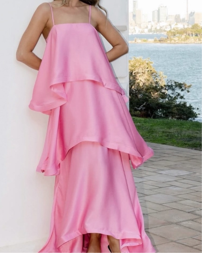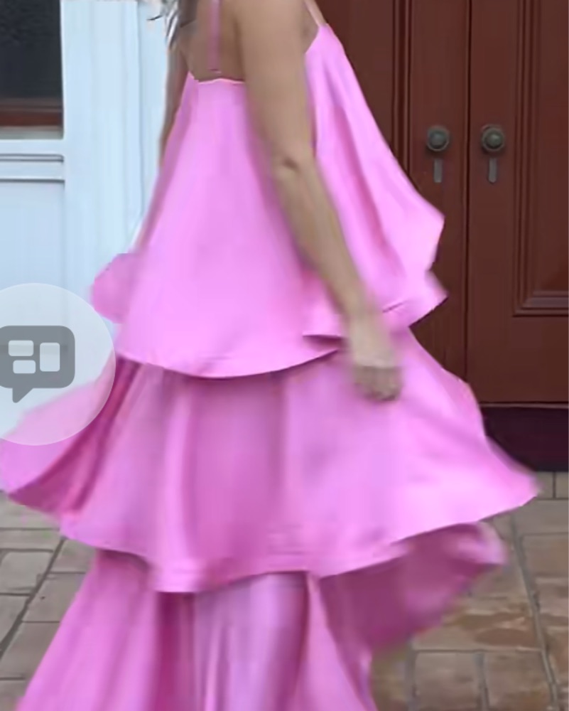 Gorgeous square neck sleeveless gown! True showstopper in the prettiest pink hue 💗 Runs a bit big - can fit S or M too :)