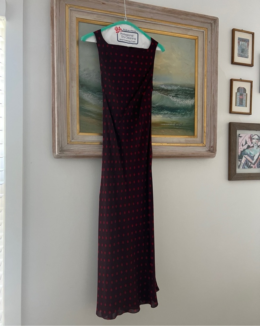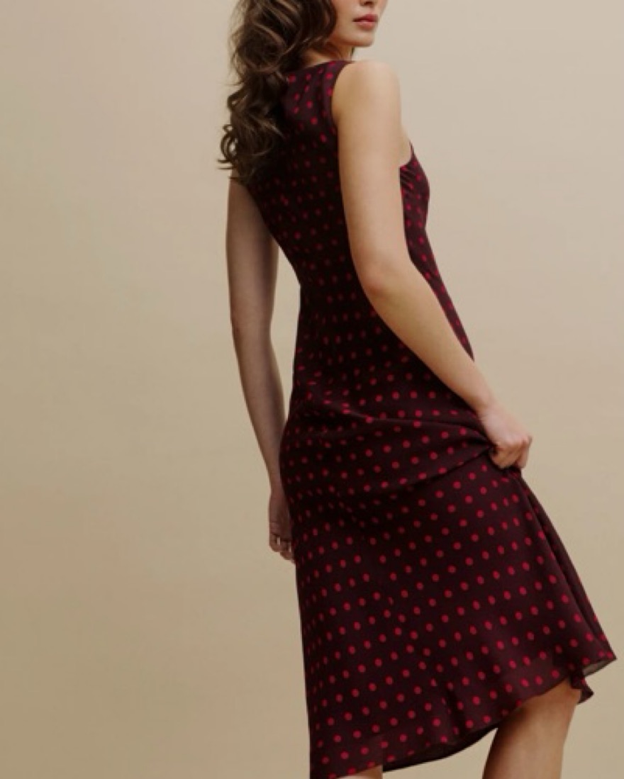 The details Non-adjustable straps, boat neckline. This is a lightweight georgette fabric with a dry handfeel - 100% Viscose. Dry clean only.