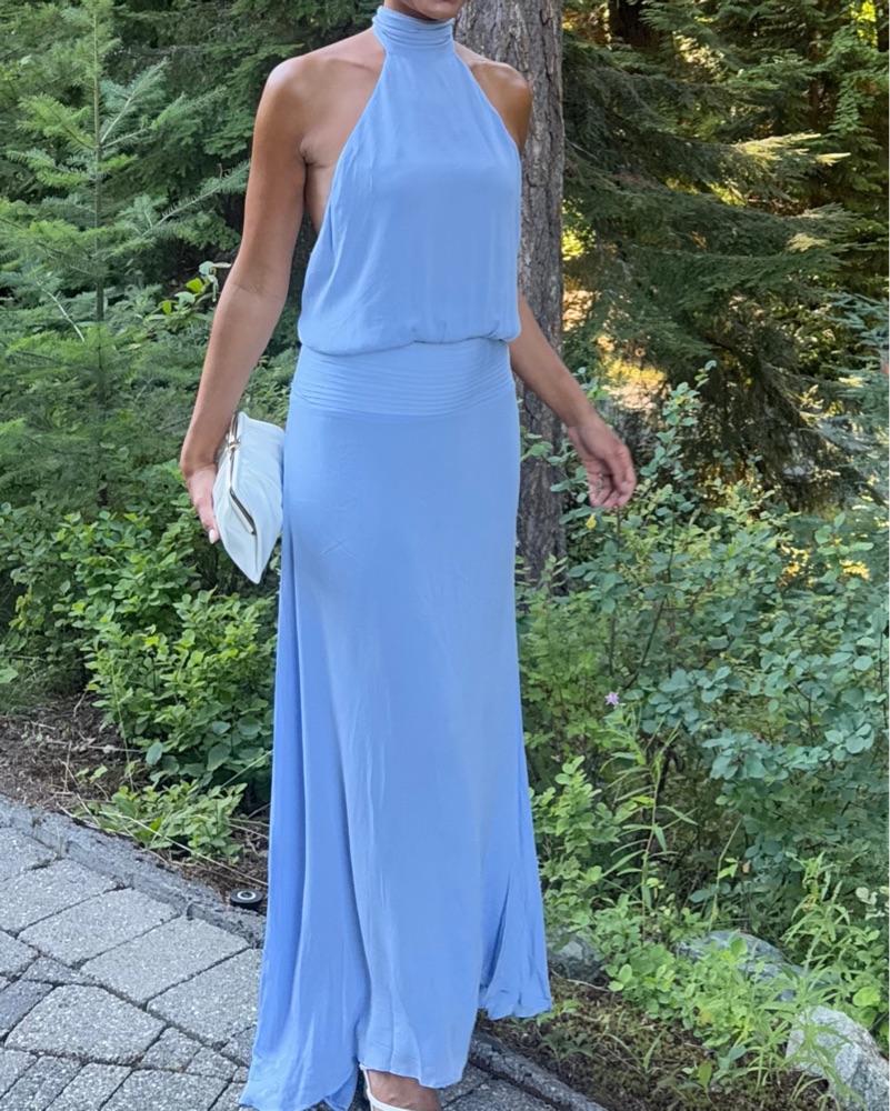This dress is sooo flattering! Adjustable neck, light weight airy, can be dressed up or dressed down depending on the occasion.