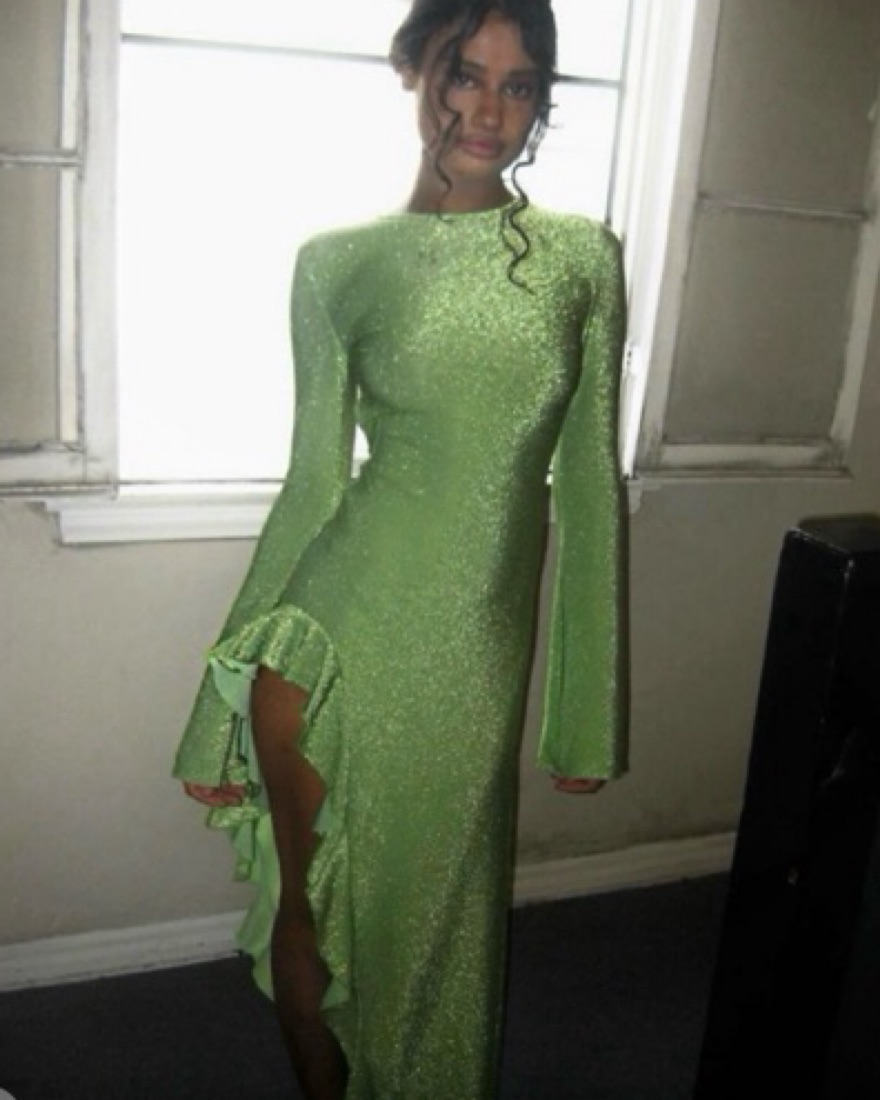 Showstopper gown perfect for euro summer! See last pic for color- darker green. Good condition- alittle wear
