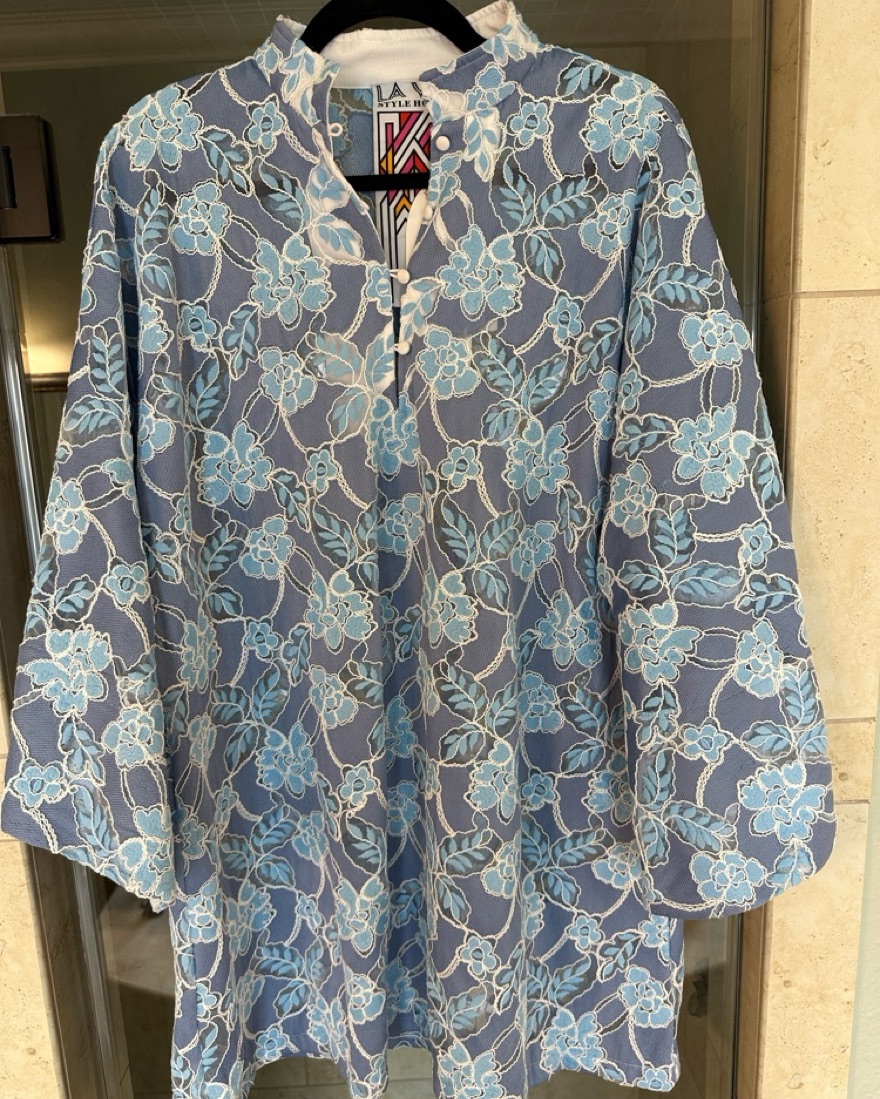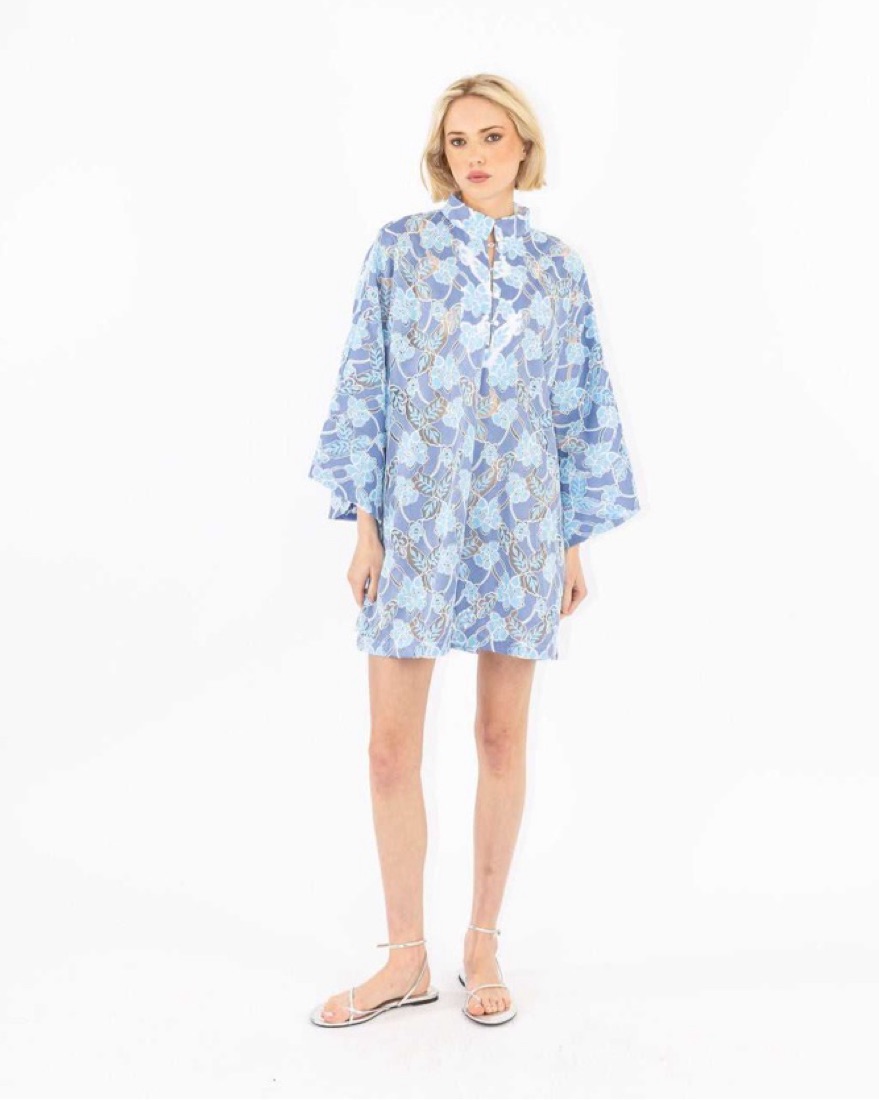 Capri blue floral mini caftan. *you will need a slip to wear underneath*