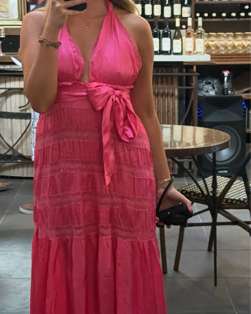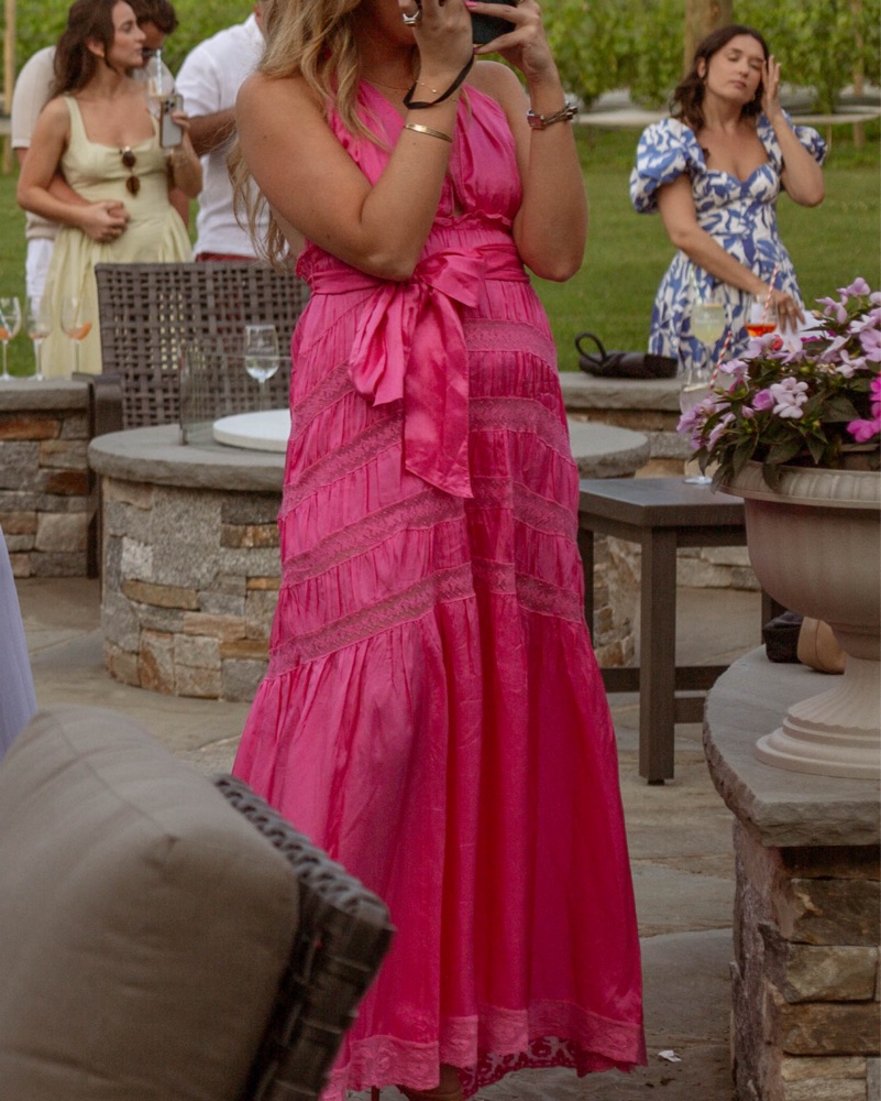 Hot Pink satin loveshackfancy dress