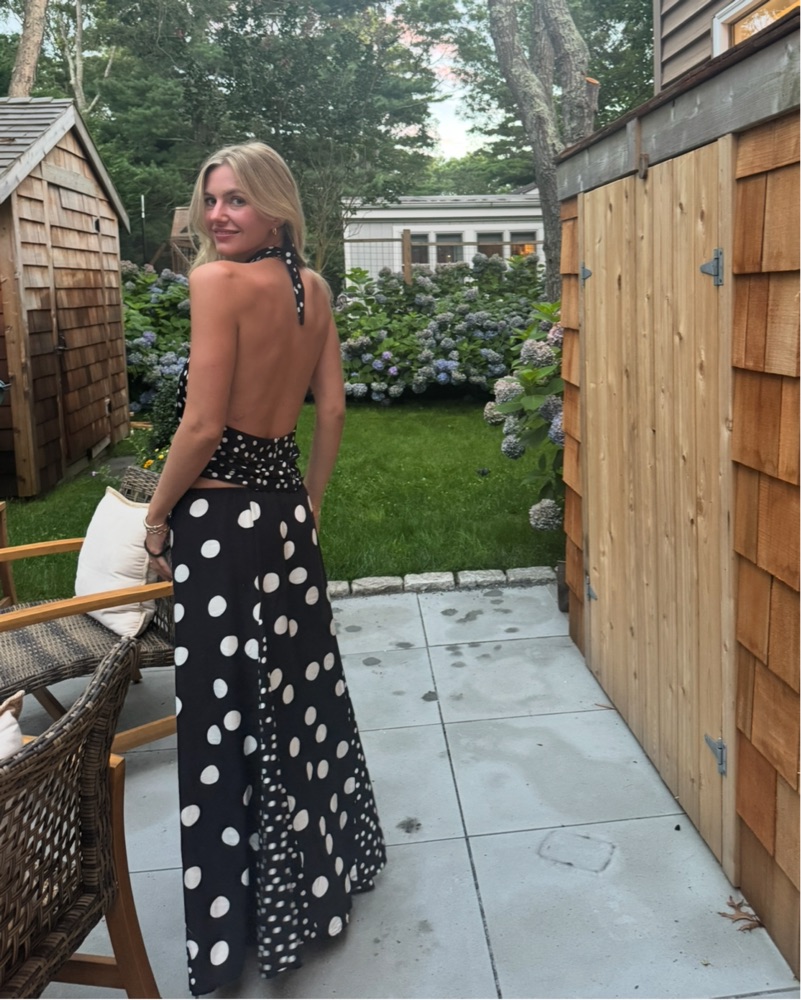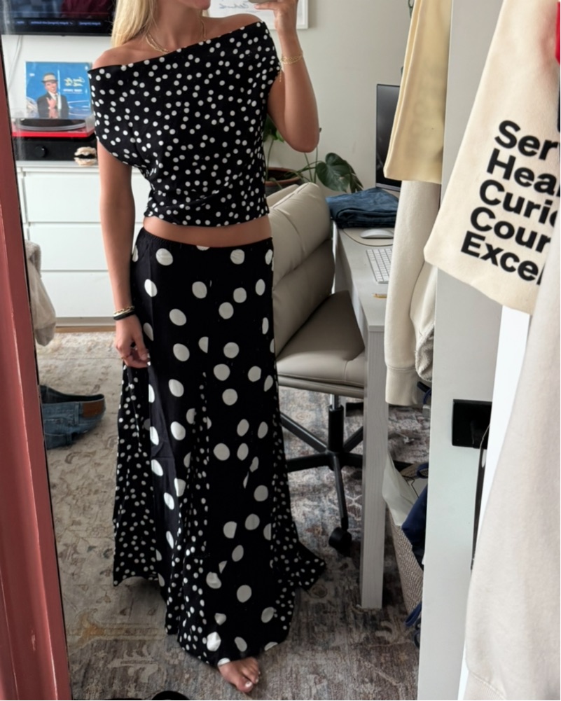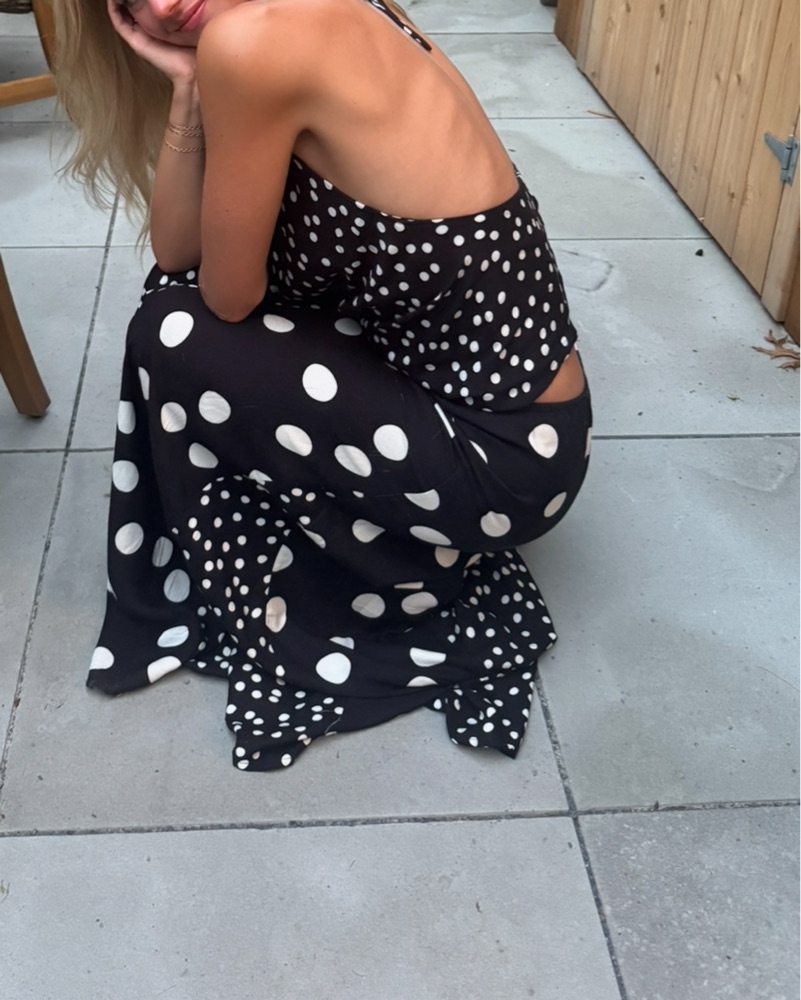 Susmies black and white polkadot set. You can wear the top several different ways! Do not wash, I will take care of that.
