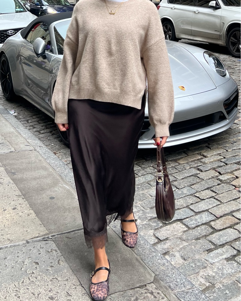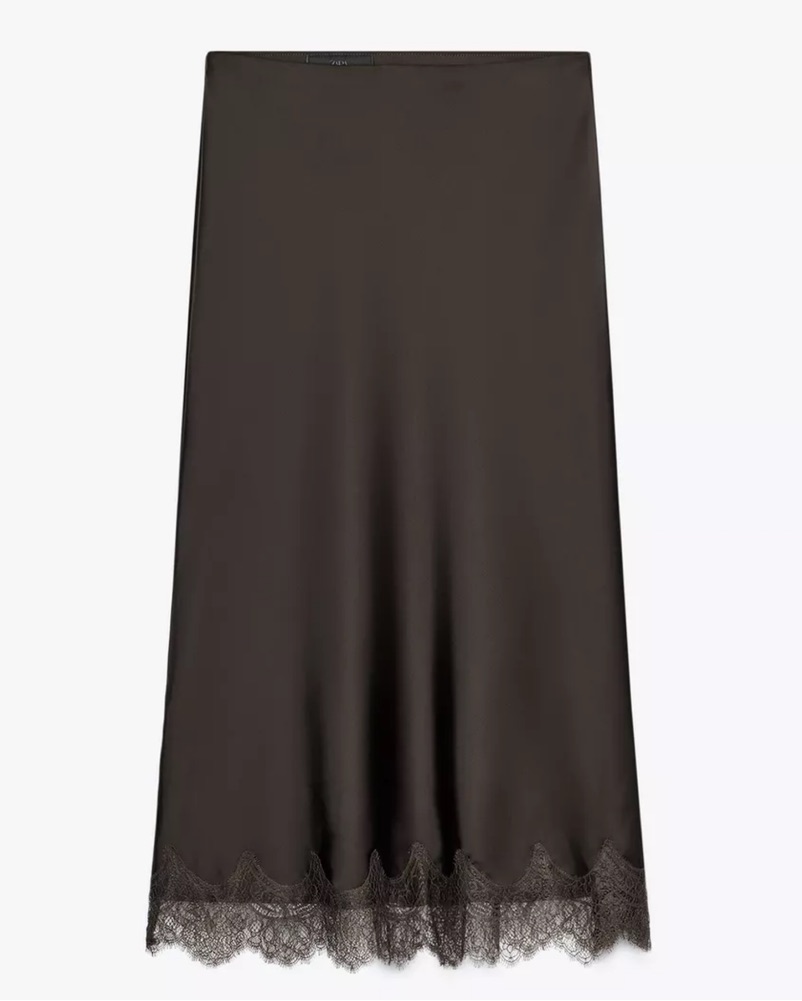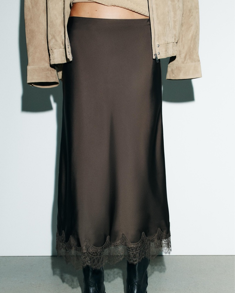 Zara Brown Lace Trim Maxi Satin Skirt by Zara - Pickle