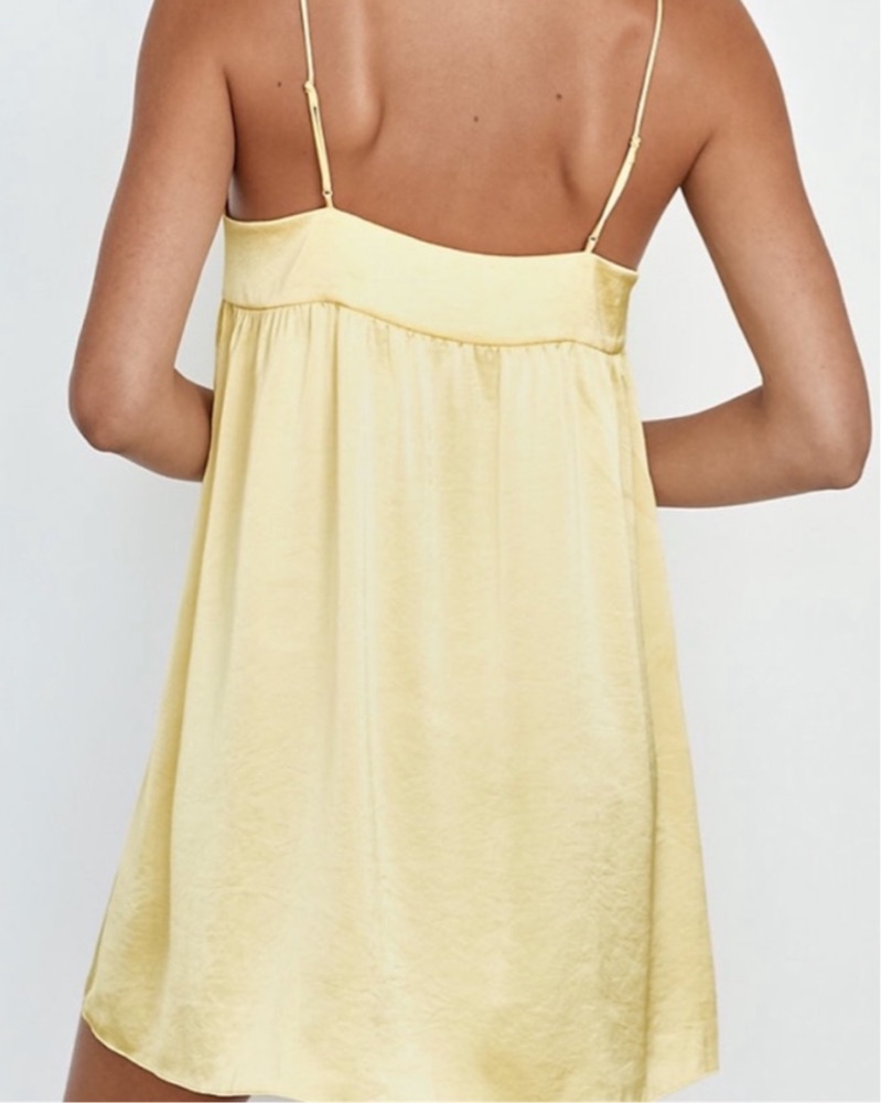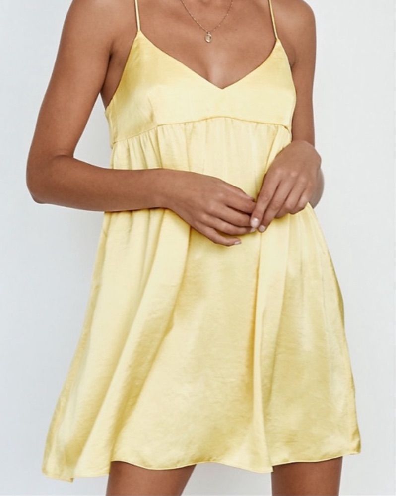 This lightweight and easy yellow mini dress is perfect for warm weather events and casual summer outings.