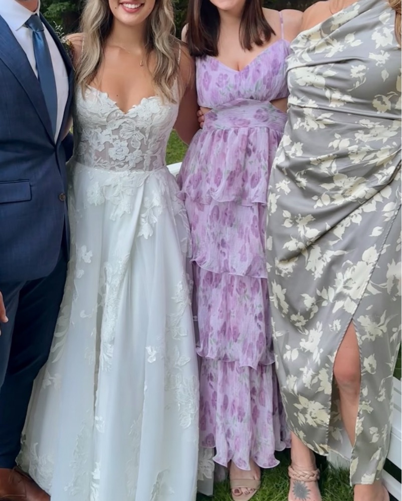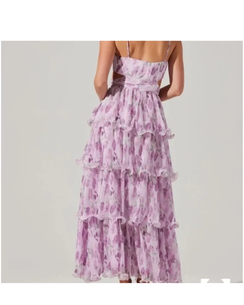 ASTR the label Jaiden dress in lavender floral. Tiered. Side cutouts at bust. adjustable straps