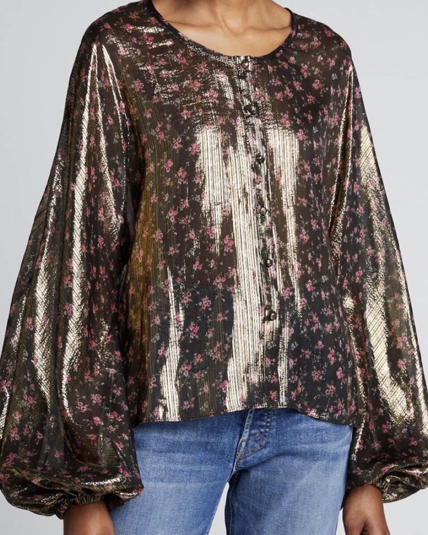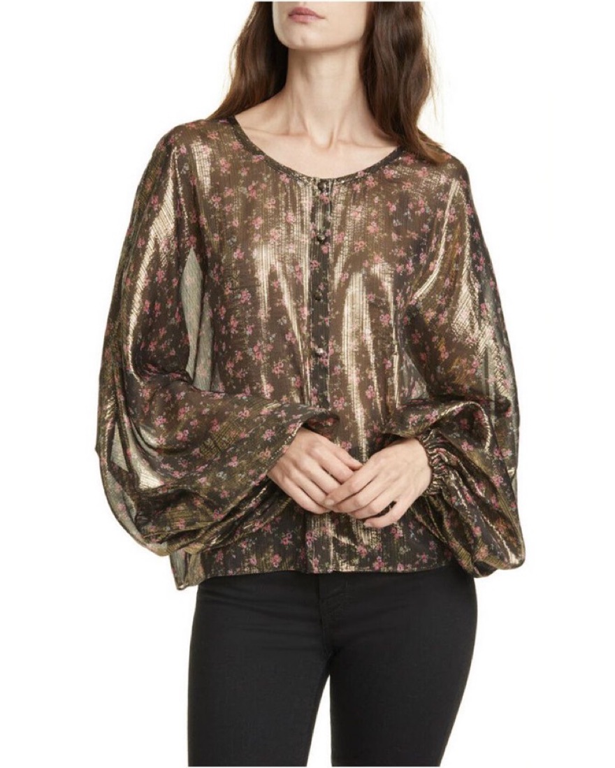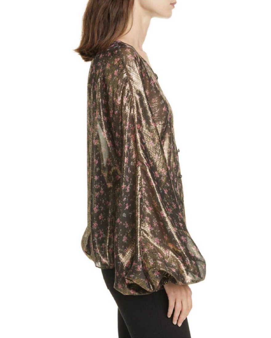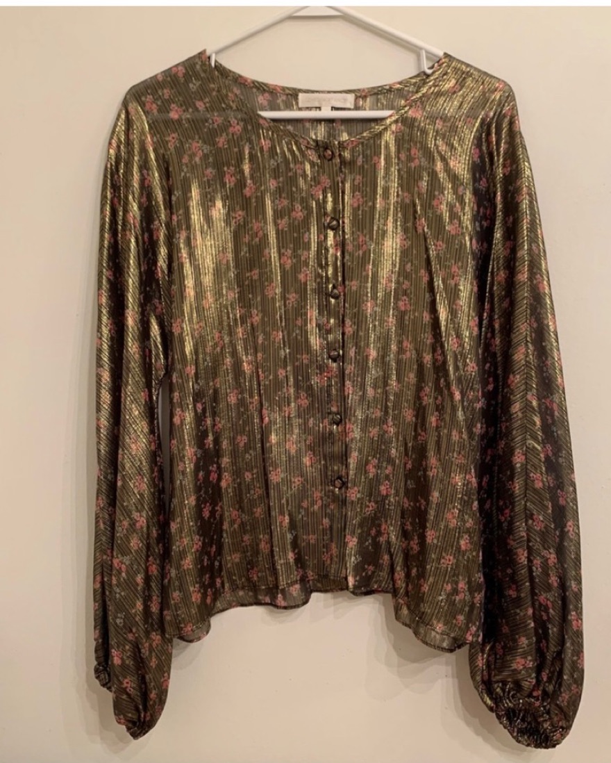 LoveShackFancy Adeline Gold Metallic Floral Button Down Shirt. Size XS. 73% silk 27% metallic. Perfect for the holidays!