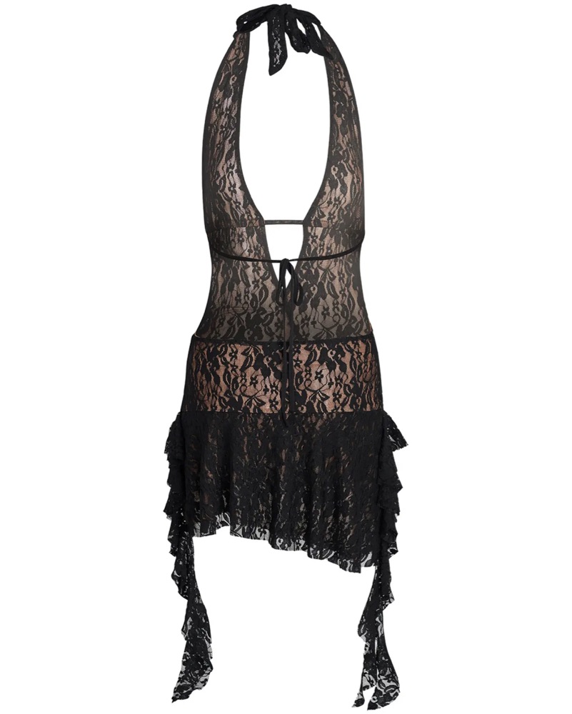 SOLD OUT ONLINE Plunging backless mini halter dress in lace