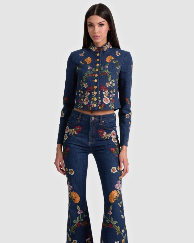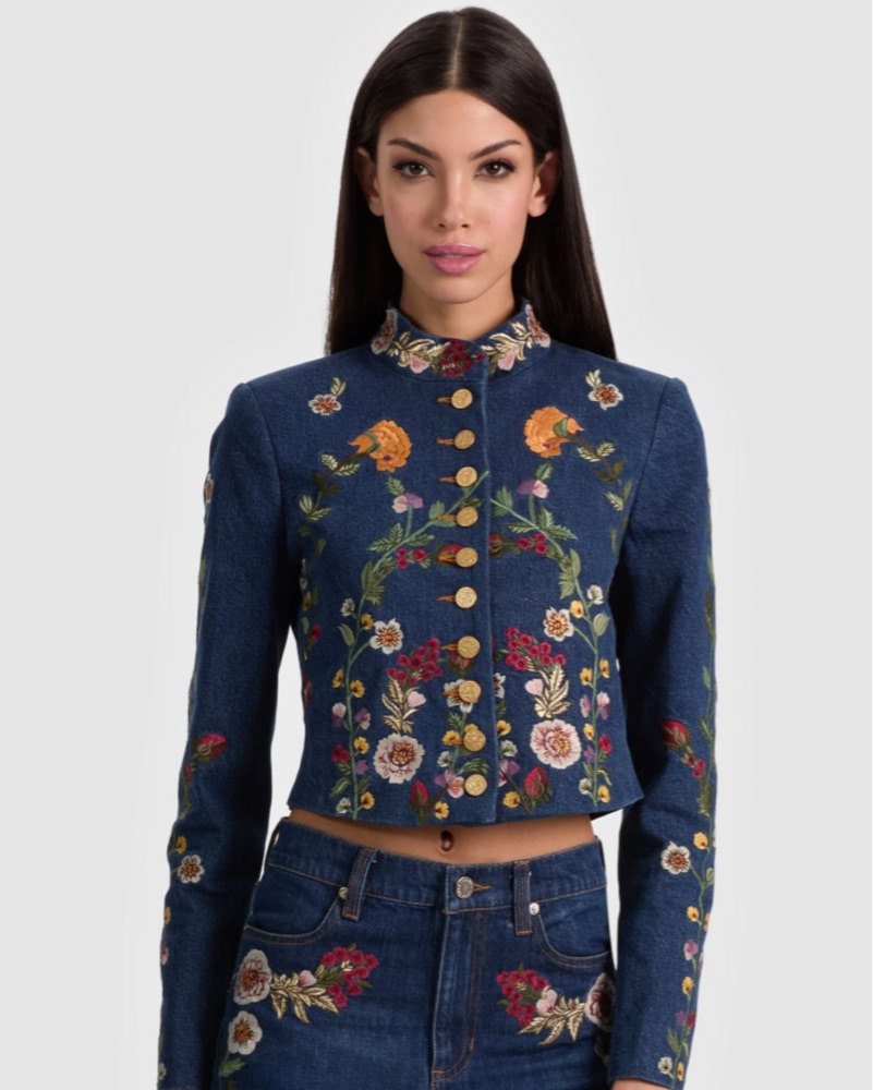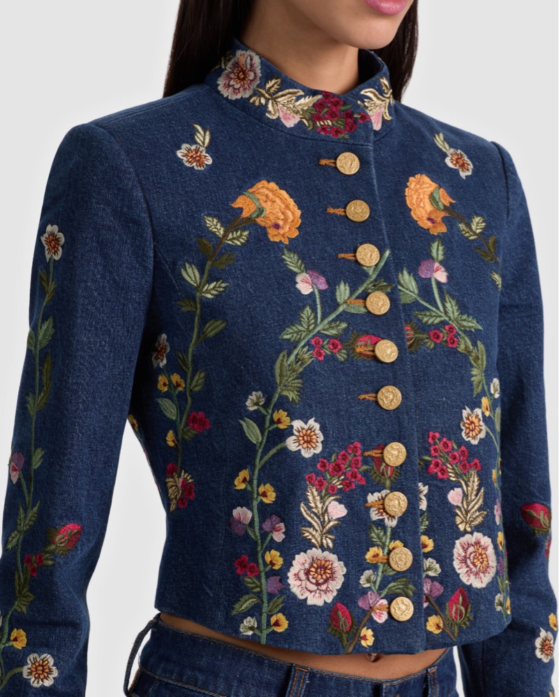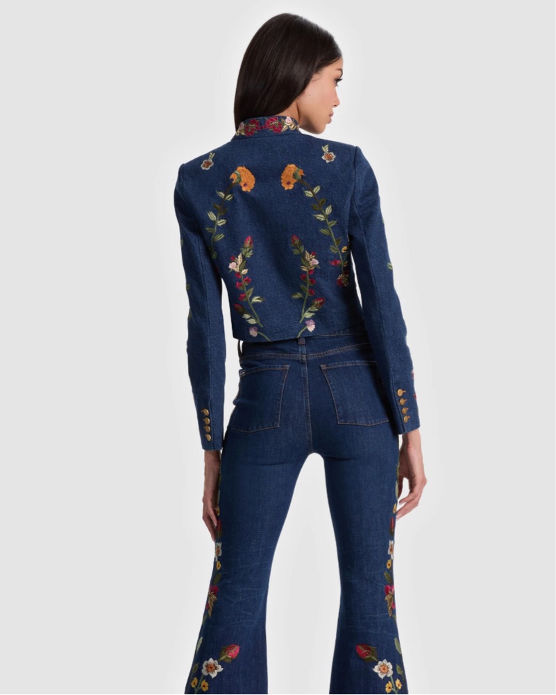 Vibrant Floral Denim Jacket by Alice & Olivia - Pickle