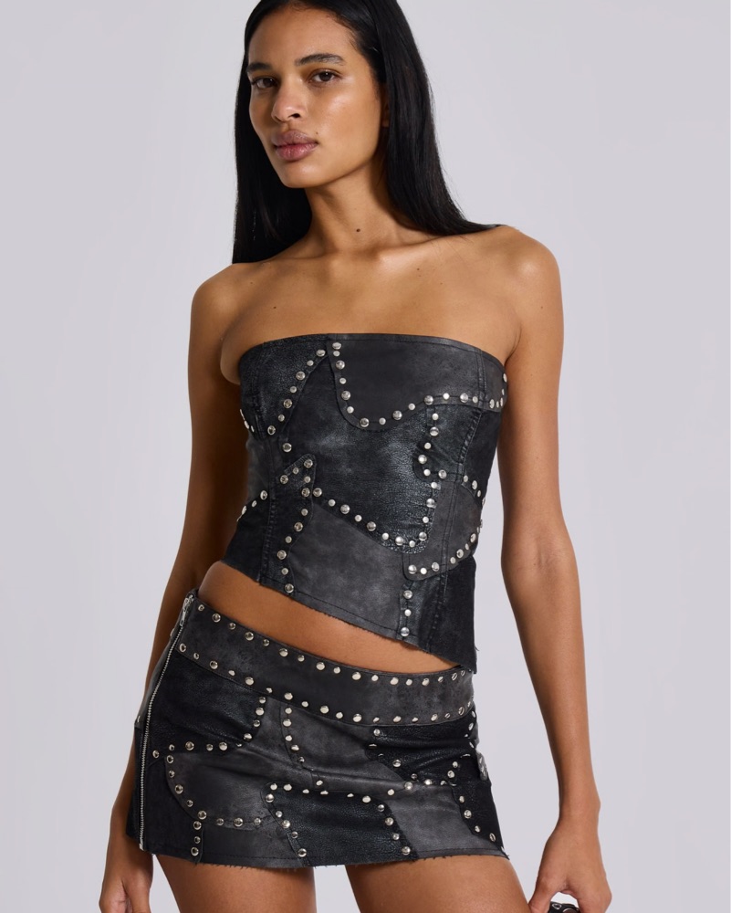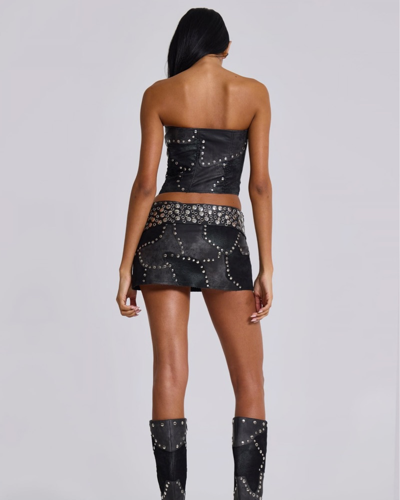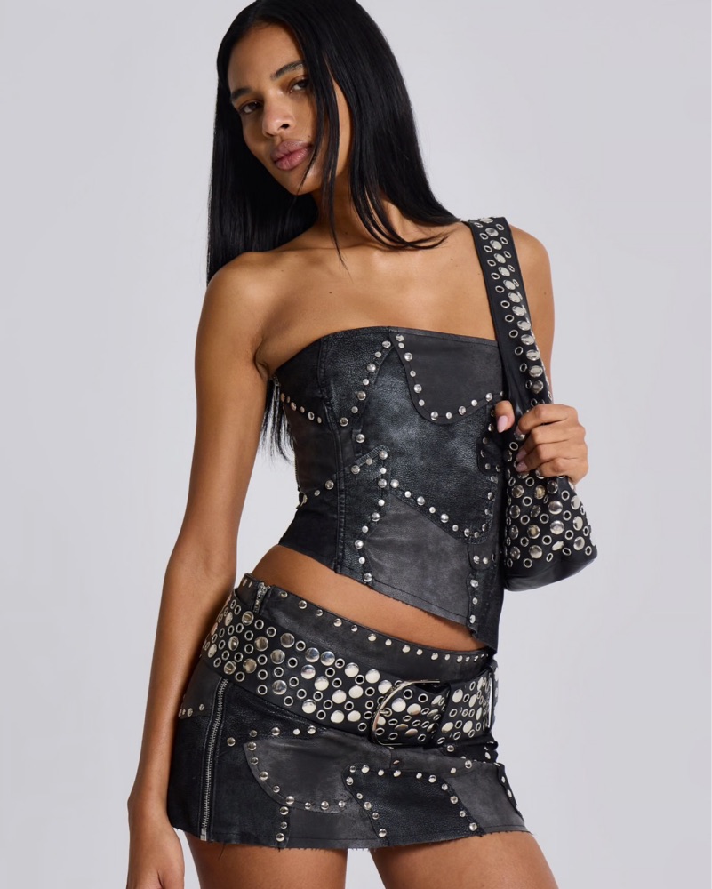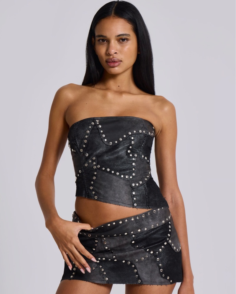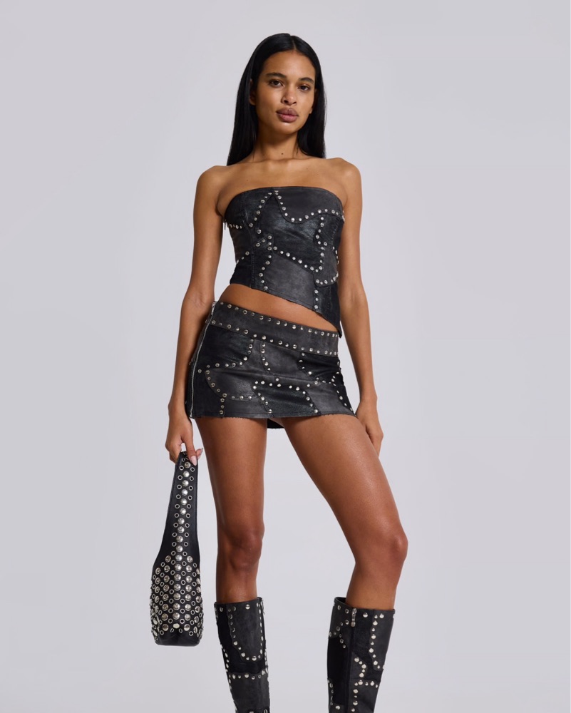 Jaded London Shadow Studed Mini Skirt by Jaded London - Pickle