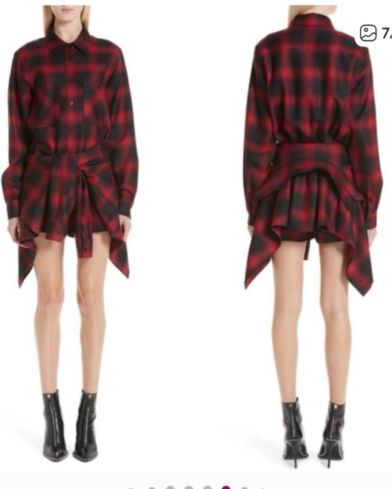 Alexander Wang Tie Waist Wool Flannel Dress Romper