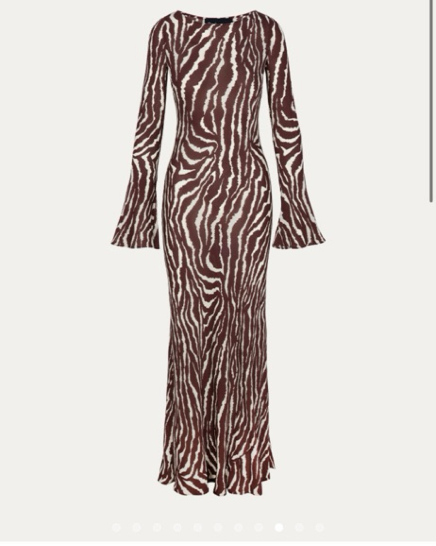Realisation Par Gia maxi dress, long bell sleeves, zebra print. I have it belted in the first picture.