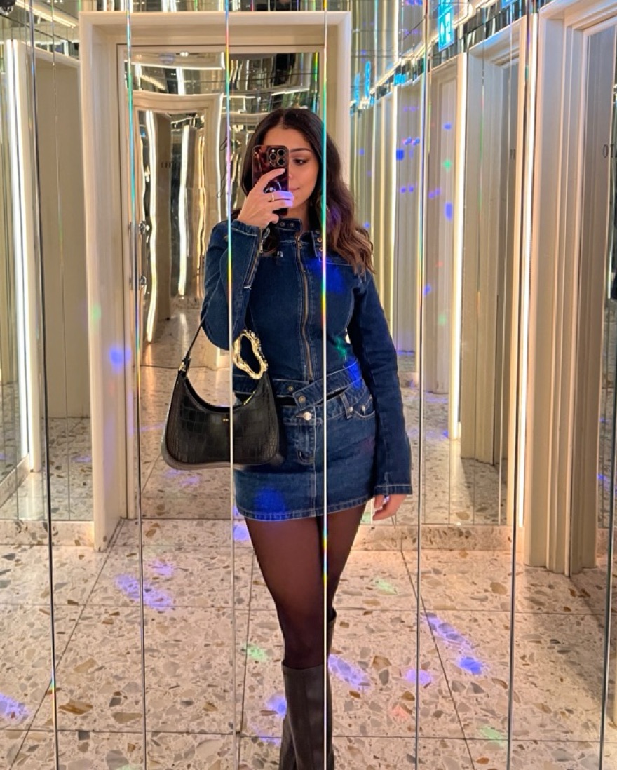 The skirt is from edikted! Not the one pictured with the jacket but the one pictured at the end. Jacket is x small and skirt is small