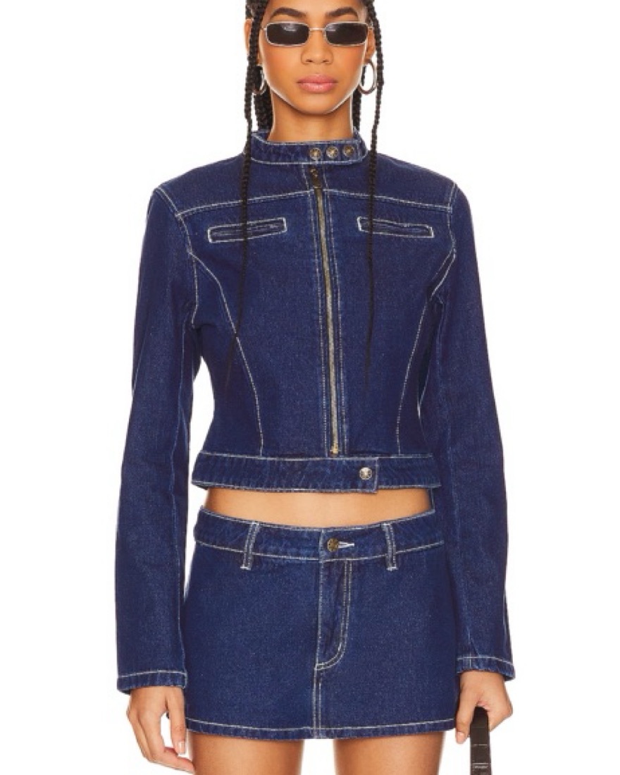 Lioness Moto Denim Jacket & Skirt Set by Lioness - Pickle