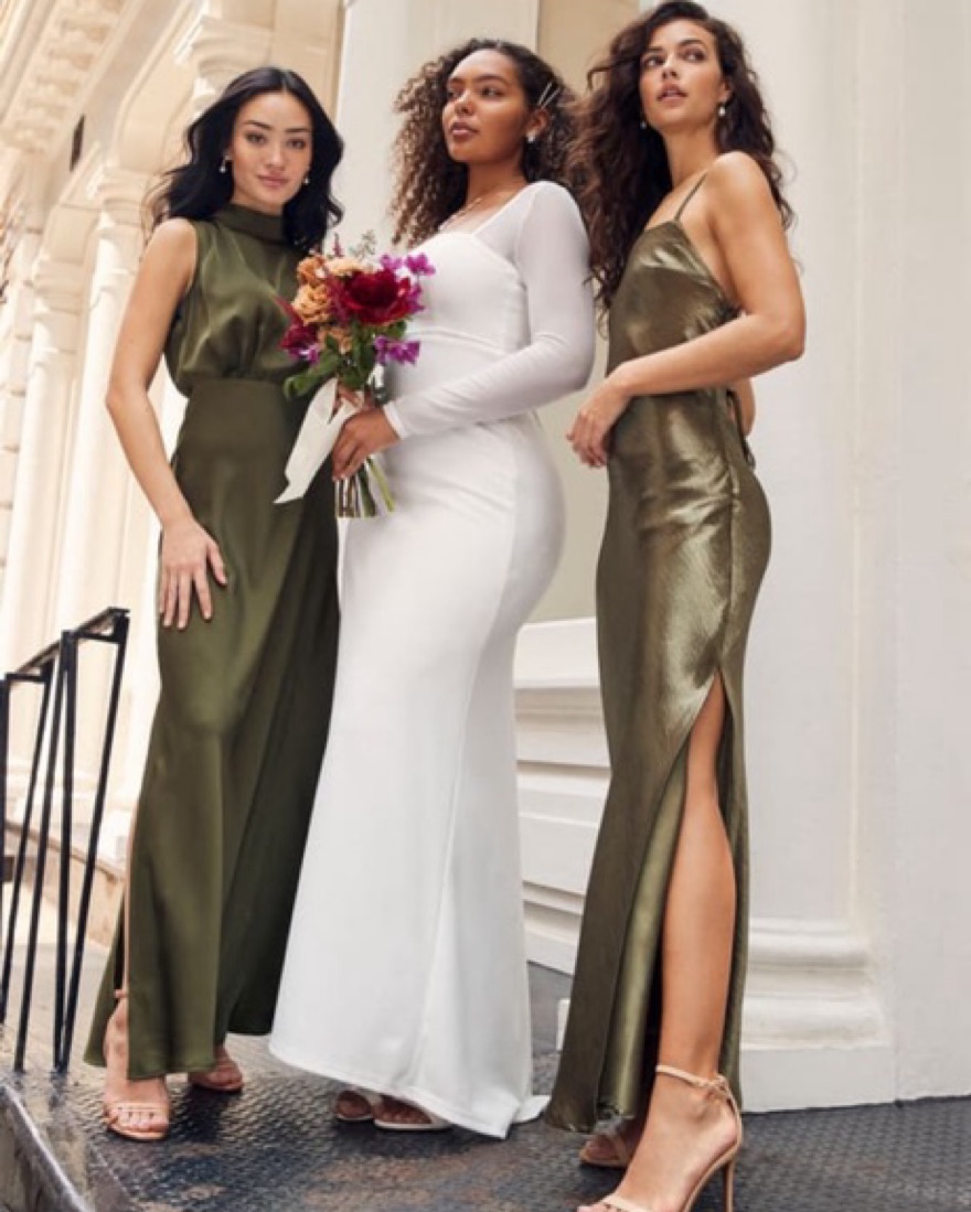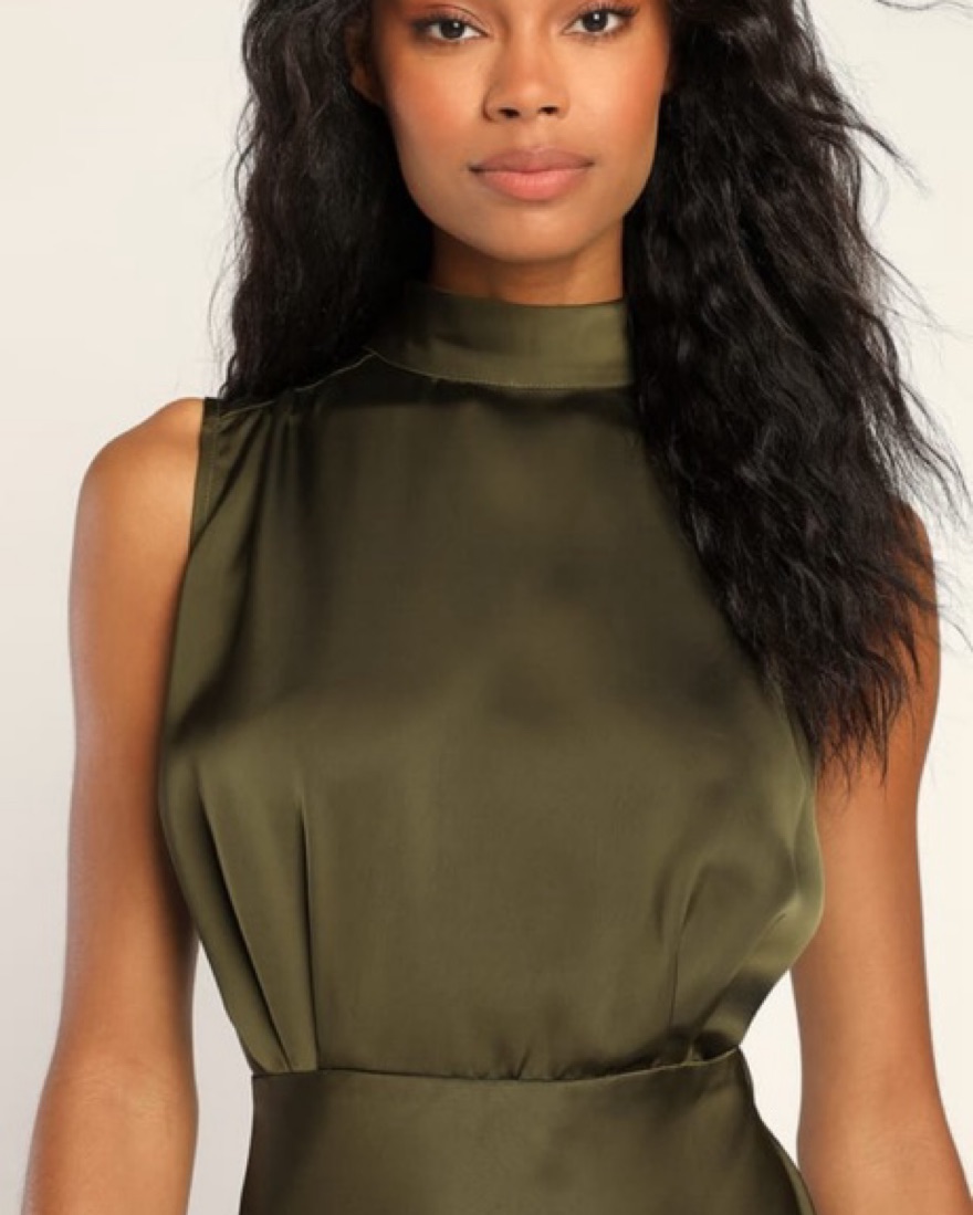 Lulus Olive Green Satin Mock Neck Dress by Lulus - Pickle