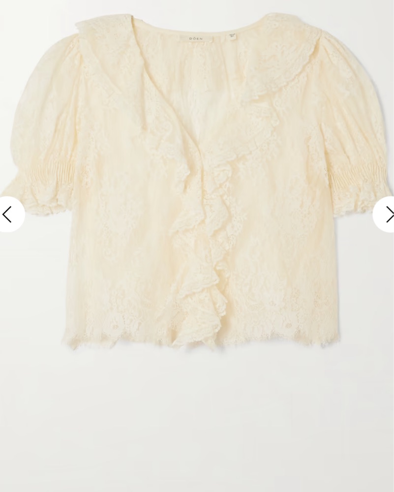 The romance of the Edwardian era inspires DÔEN’s ‘Henri’ blouse. Cut from delicate lace, it has pintucked puffed sleeves and fluttery ruffles tracing the neckline. Underpin yours with a tonal bralette to temper the sheerness.