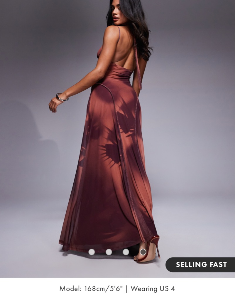 This stunning satin maxi dress is perfect for a glamorous evening event or special occasion. The sultry silhouette and rich burgundy hue exude sophistication.