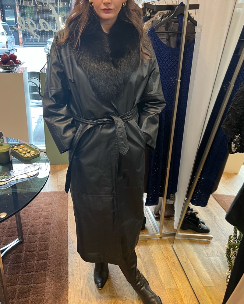 Vintage Leather Coat With Fox Fur Trim