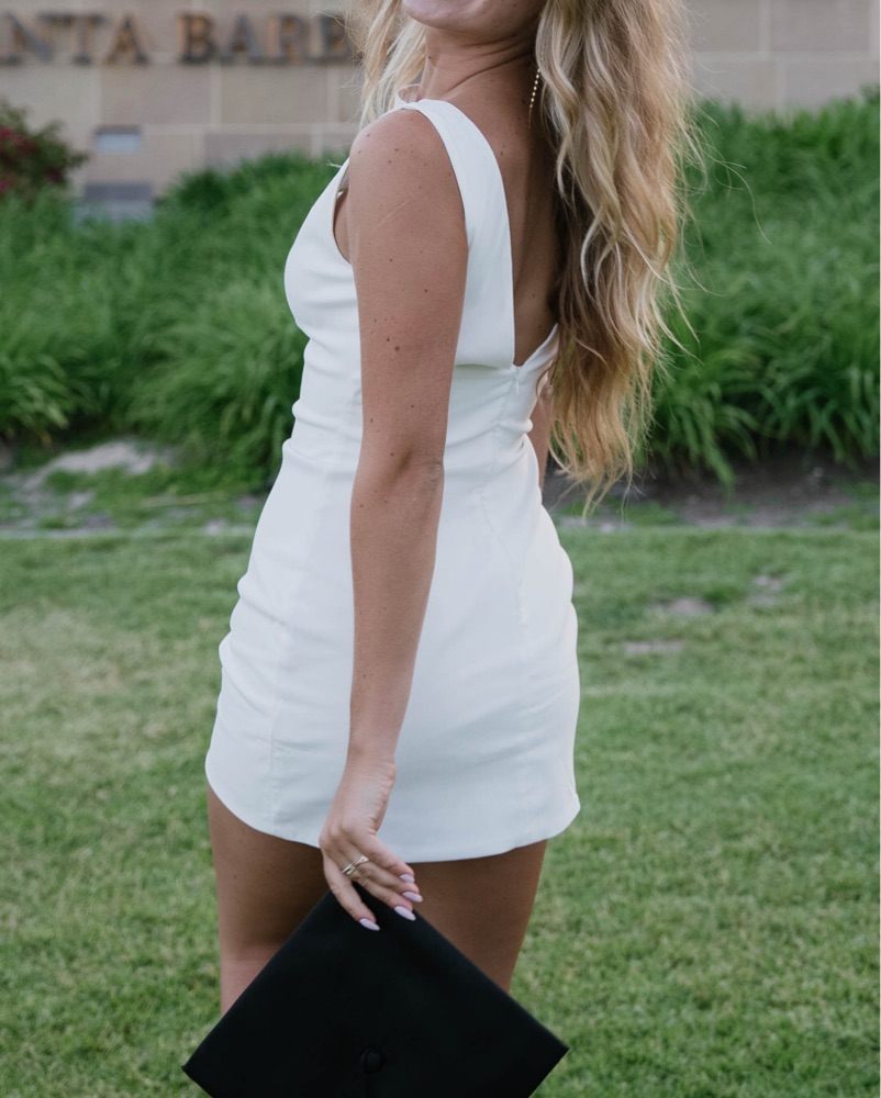 Ance Gria Audrey H Mini - Ivory. This fitted mini dress features a square neckline which is complemented by a floral-inspired cut-out. The most buttery-soft material. Very flattering.