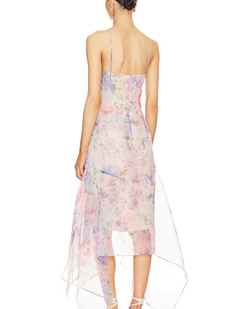 This stunning floral midi dress is perfect for a spring or summer wedding. The airy chiffon fabric and flowing silhouette create a romantic, feminine look.