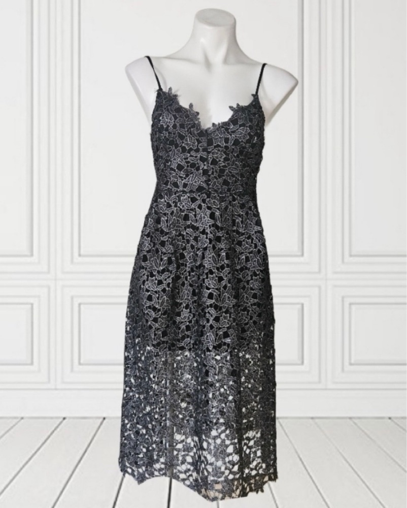 Black and silver lace overlay midi dress. Gorgeous coloring and only worn once. Size medium!