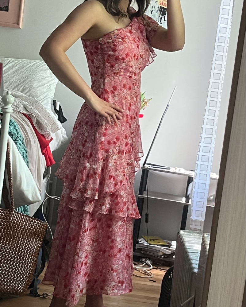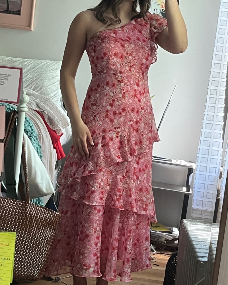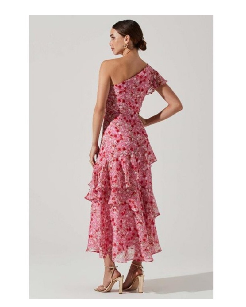 ASTR The Label One Shoulder Pink Floral Midi Dress, Size M. Fits like a glove! Size zipper closure. Great condition!
