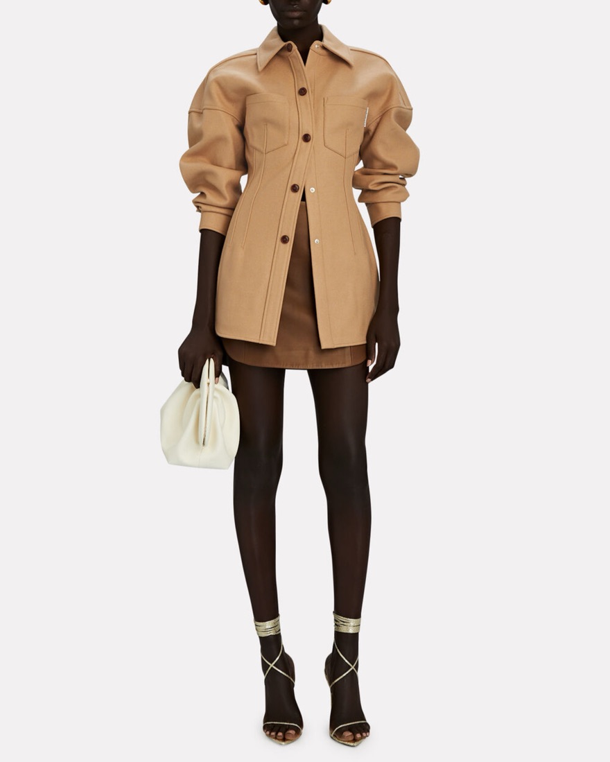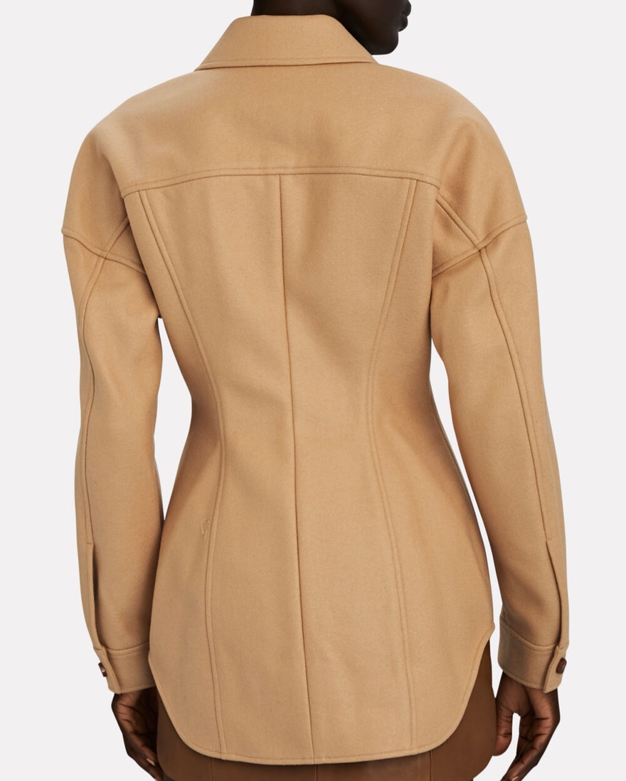 Alexander Wang Jacket. Cinched waist w/ structured corset-style boning, cozy tan wool knit. Wear as a jacket or shirt. Size 2 (Small). Super flattering. Very versatile. Fall, spring, winter, upstate, western, aprés ski, vacation, sports game, day to night, workwear, Thanksgiving, Aspen