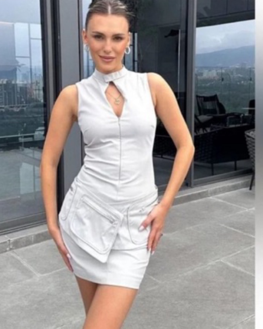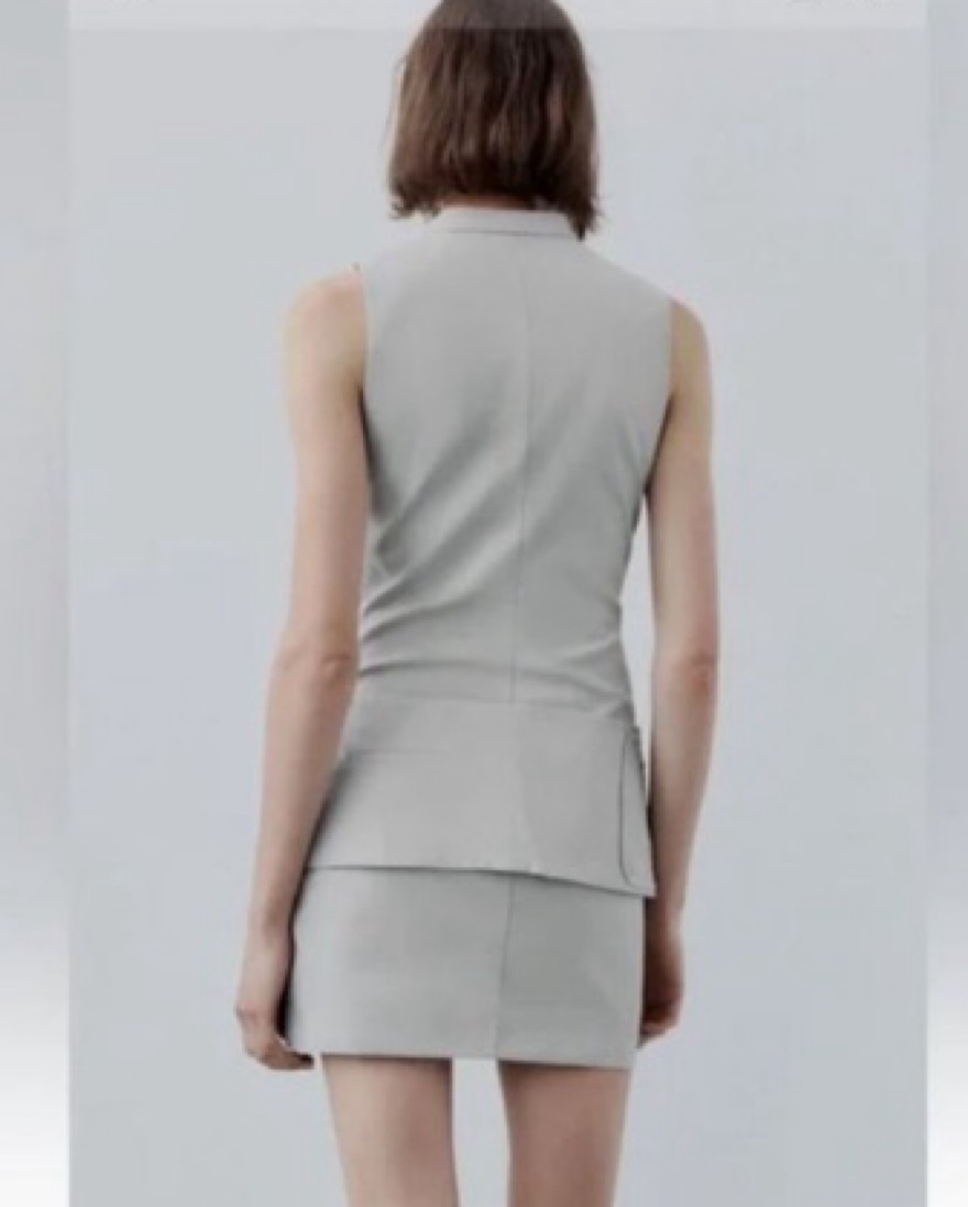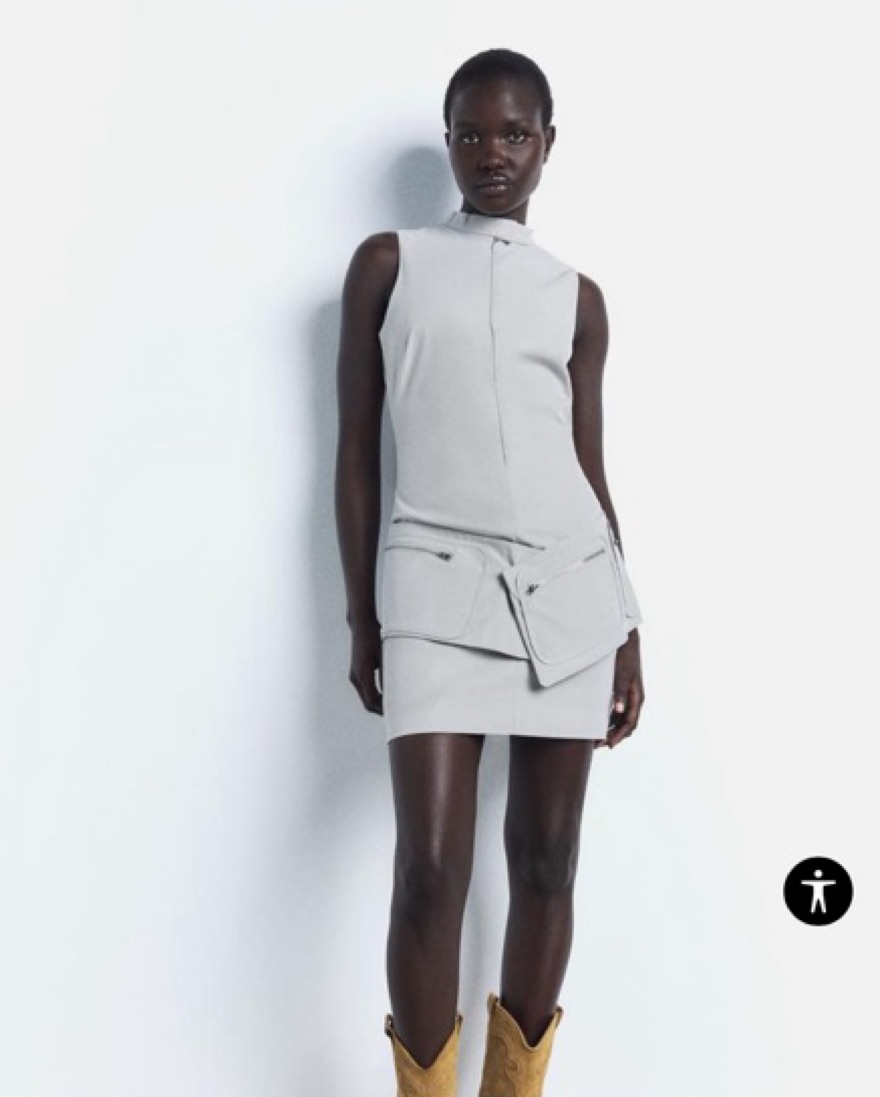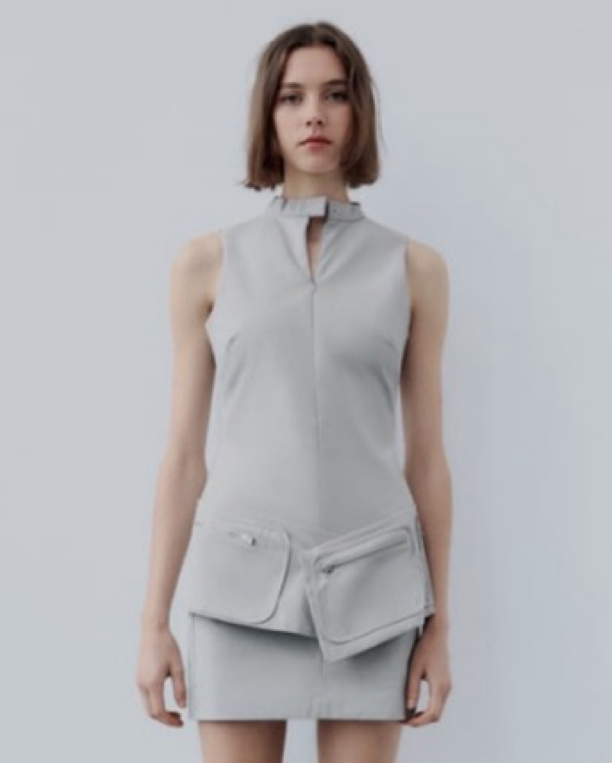 Sold out viral dress !!BELTED SHORT DRESS WITH POCKETS Sleeveless mini dress with mandarin collar. Adjustable self belt and pockets with metal zipper with snap buttons. Front hidden in-seam zip and button closure (not very stretchy