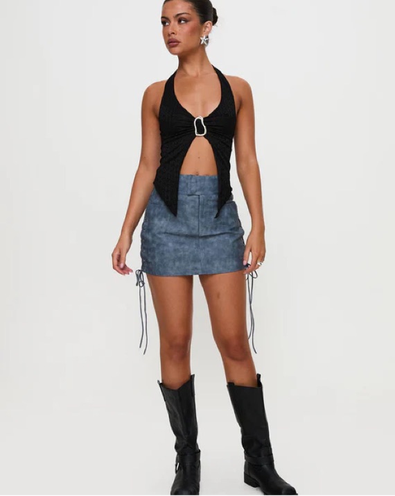 Lace Up Leather Skirt Set In Slate by Princess Polly - Pickle