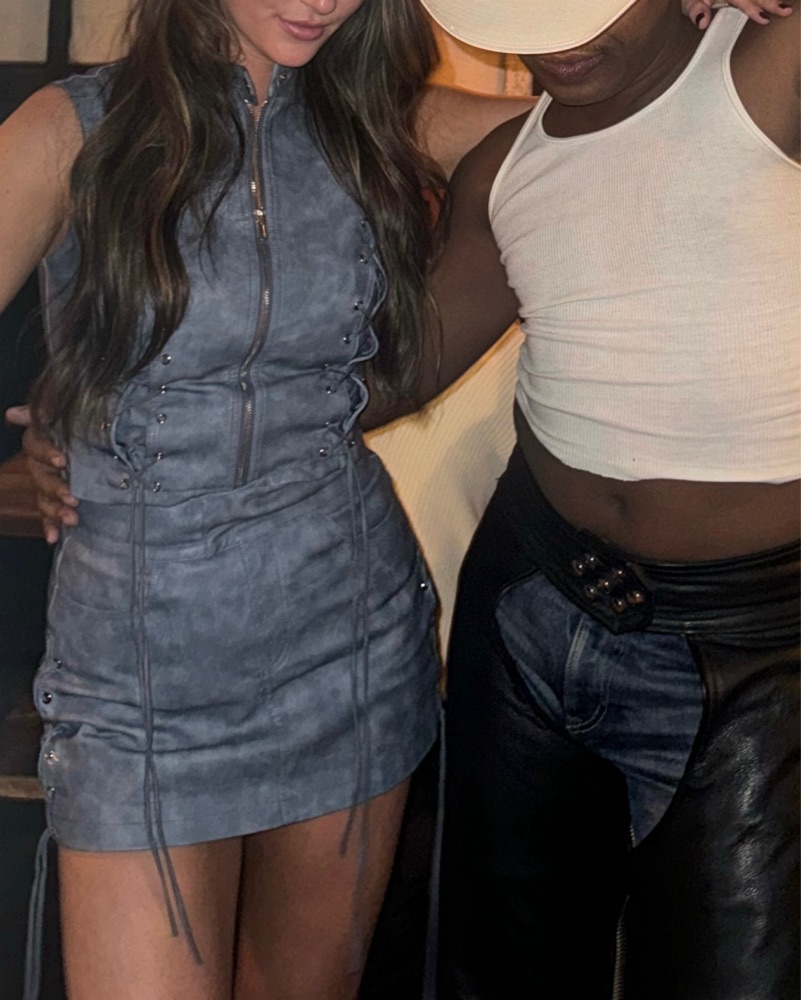 Lace up faux leather skirt set. Perfect for summer parties or western themed events. Worn once
