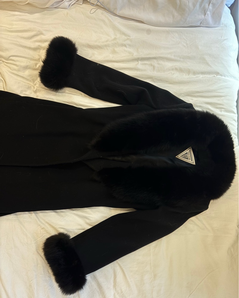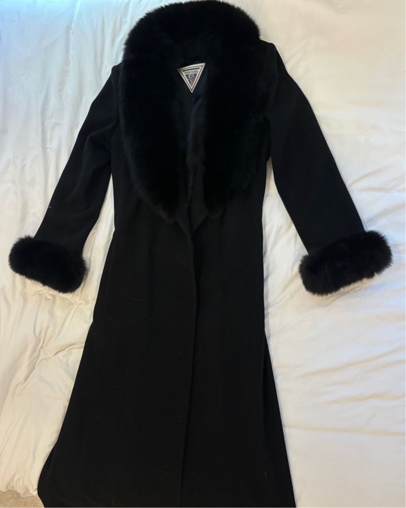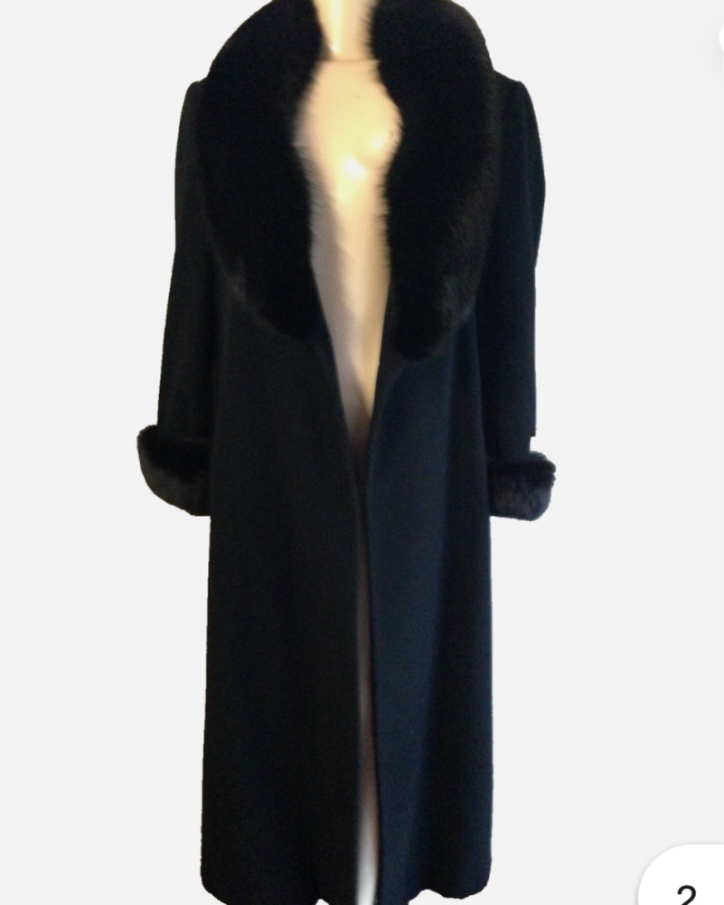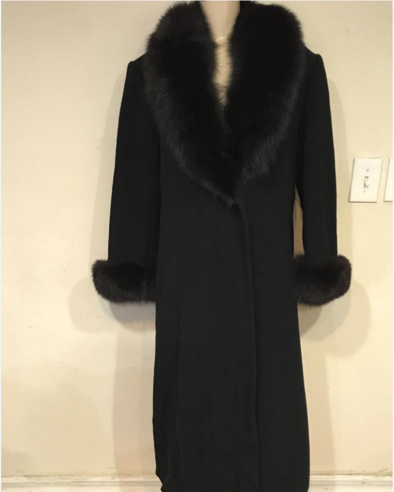 Marvin Richards Women's Winter black fox fur lambswool long coat.