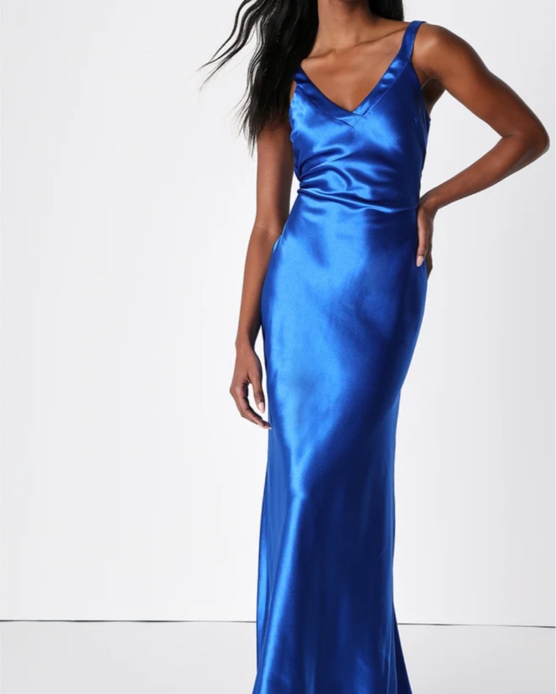 Stunning Satin Gown in Bold Blue by Lulus - Pickle