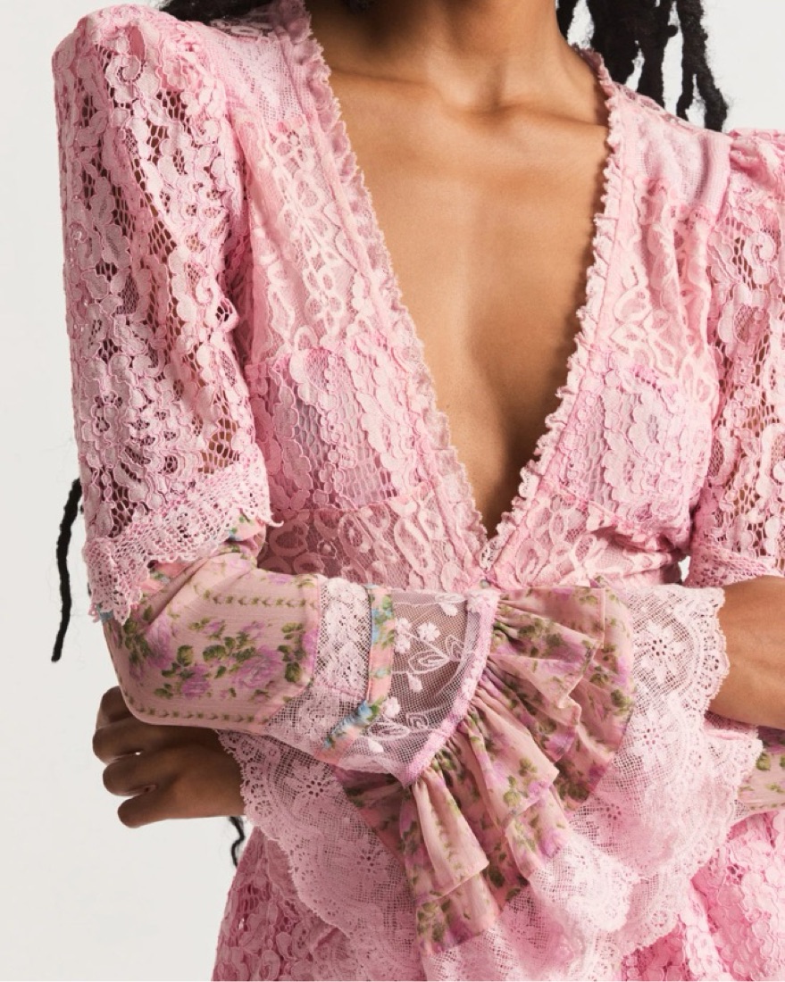 LoveShackFancy pink lace mini dress so cool , flirty, fun