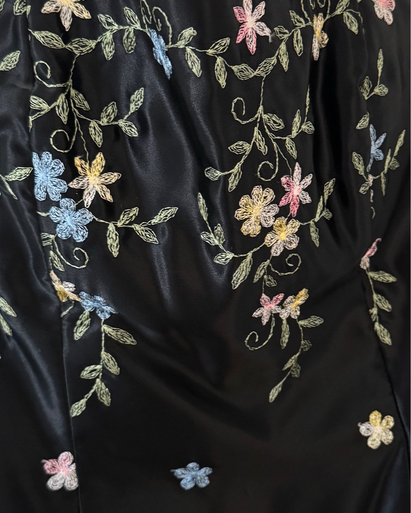 The most beautiful floral vintage gown- perfect for wedding season! Labeled size 5 but fits me size 4 well!! 5’4” for reference. any questions please ask! If you do rent this please be gentle