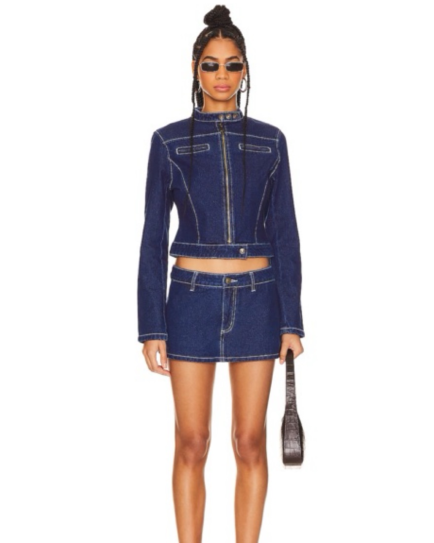 Lioness Denim Jacket and Mini Skirt Set by Lioness - Pickle