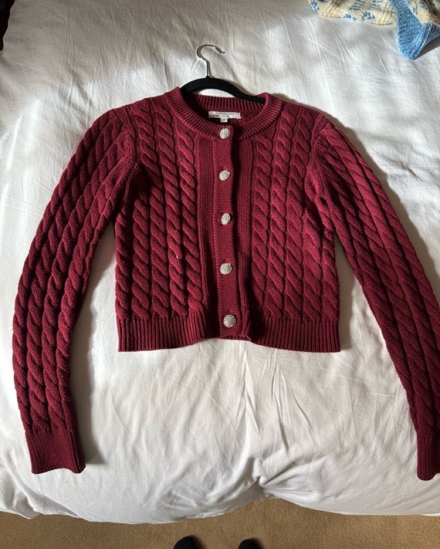 Maroon Gemstone Button Up Sweater