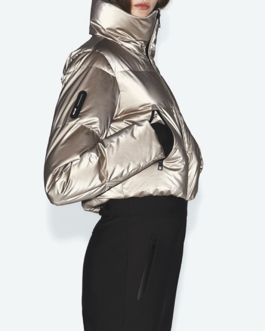 High collar with contrasting interior lining. Long sleeves with lift ticket pocket and anti-blizzard inner cuffs with thumbholes. Mesh vents at the underarms with hidden zipper closure. Front pockets with waterproof zippers with rubber protectors. Interior pocket with glasses cleaner. Front ring on