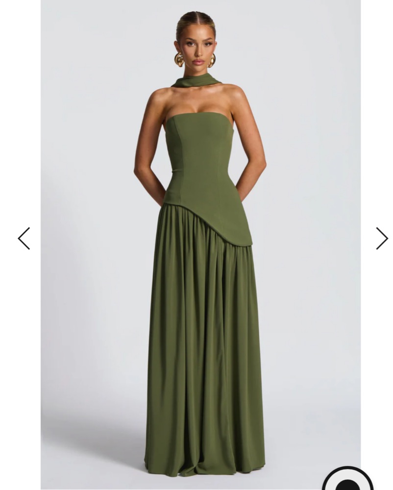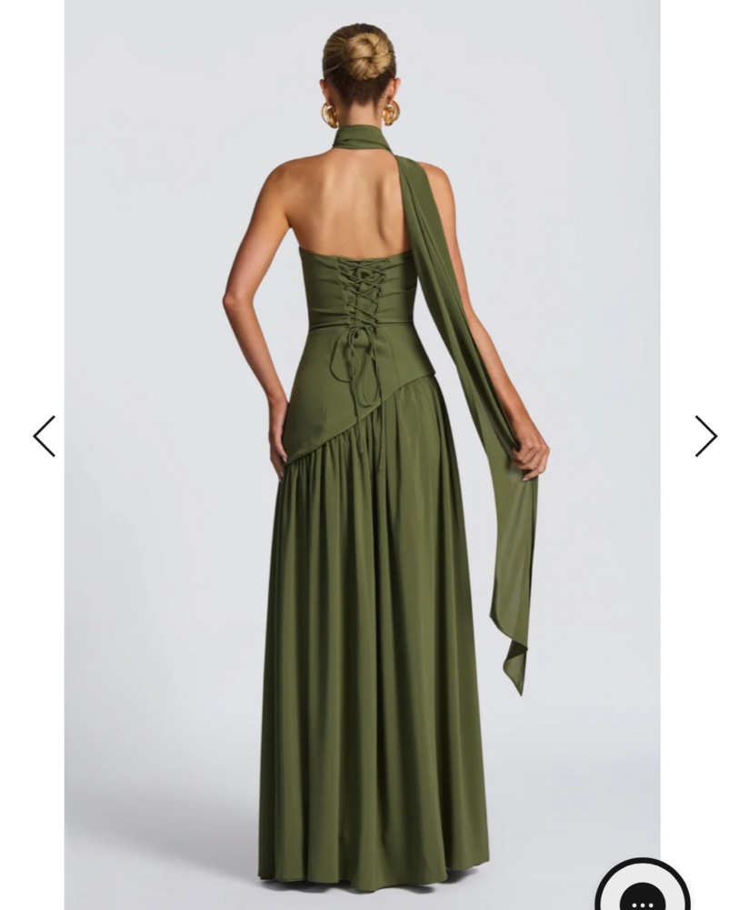 Only worn once and got so many compliments. I’m typically an XS and wore an XS- was slightly tight in the waist and had some room in the chest area! Color is listed as khaki but is more of an olive green color. Dry clean before returning preferred :)
