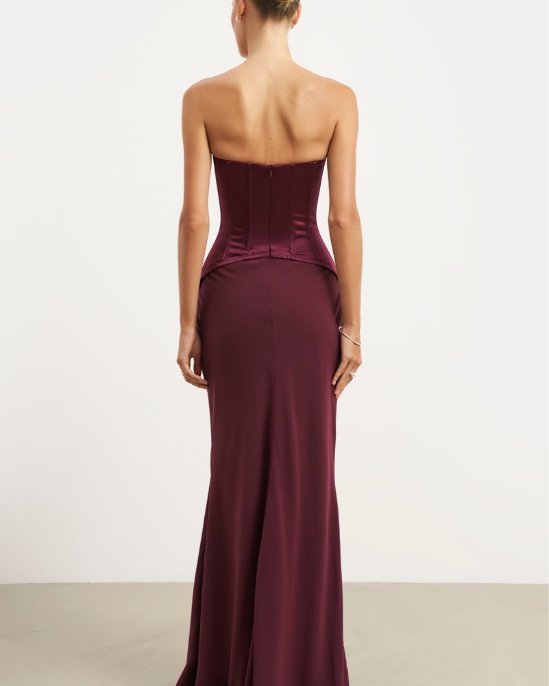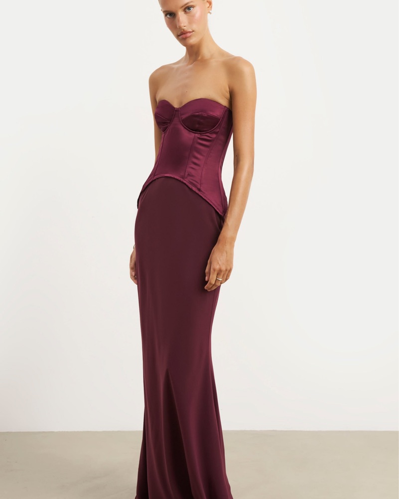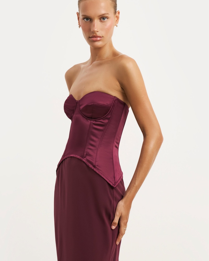 Chic Burgundy Satin Maxi Dress by Because Of Alice - Pickle