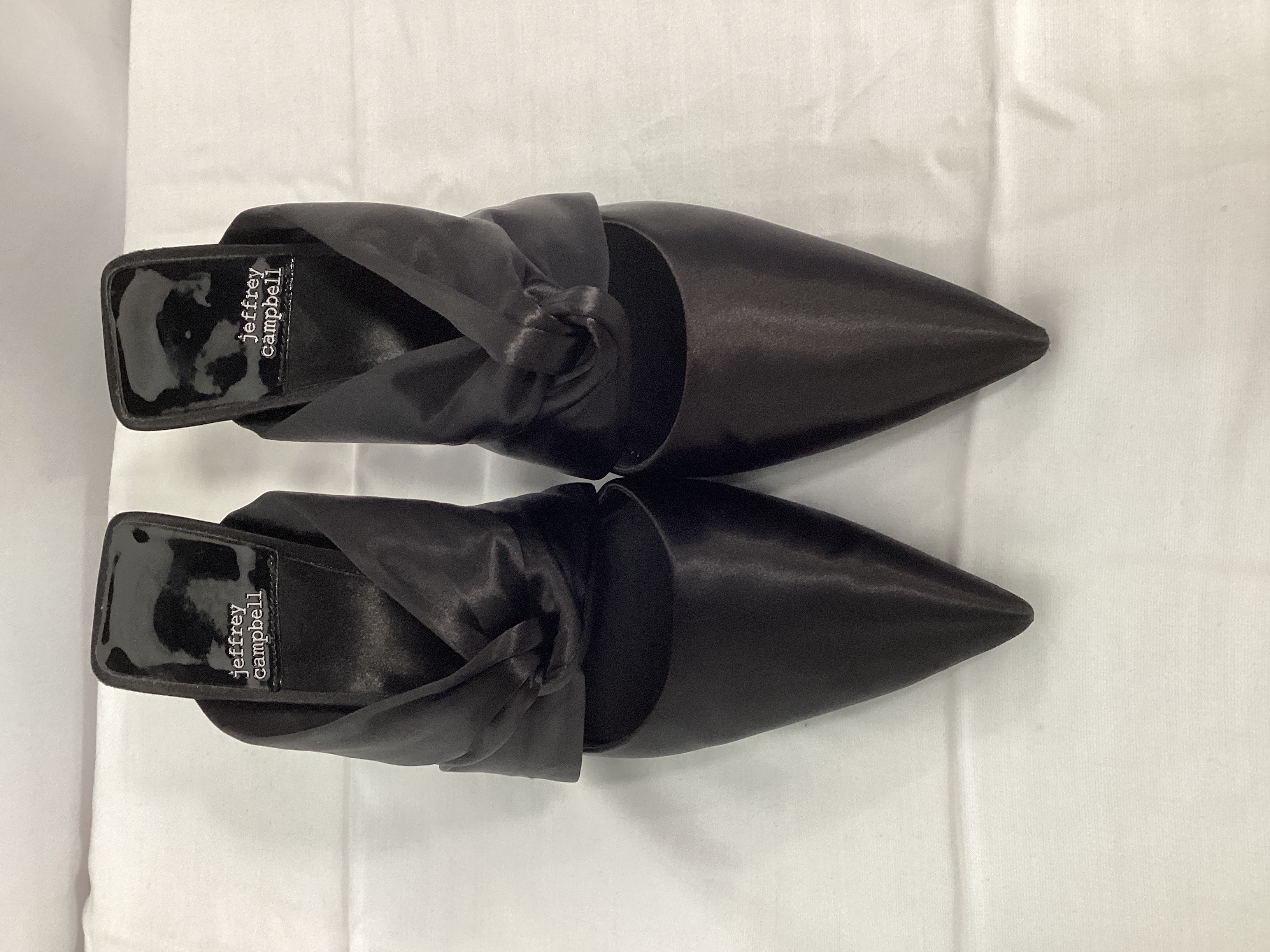 Tied Up Mule In Black Satin by Jeffrey Campbell - Pickle
