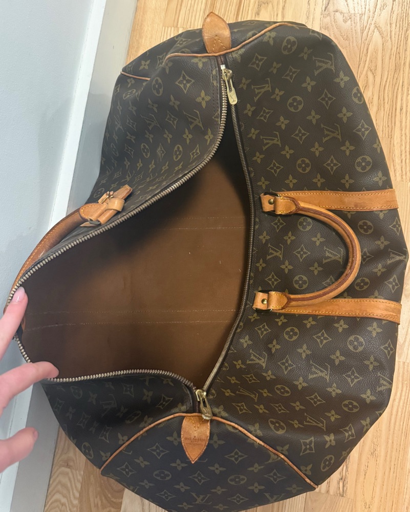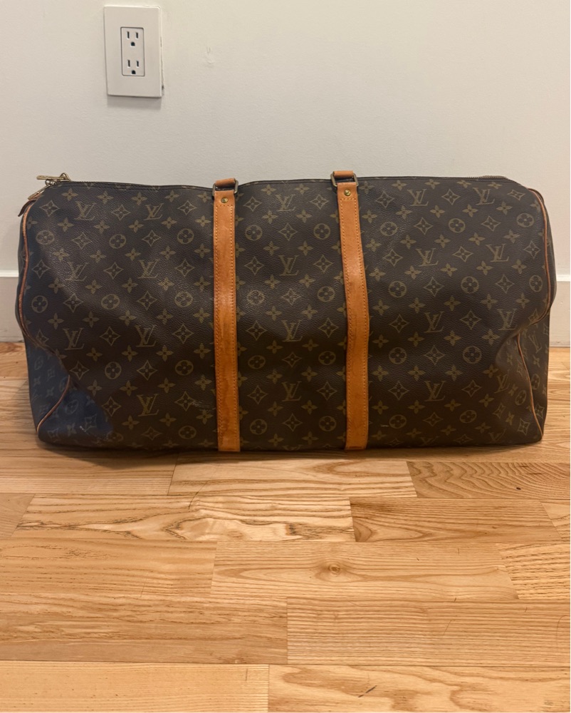 This spacious Louis Vuitton duffle bag is perfect for weekend getaways or daily commutes. Its classic monogram design and durable leather accents make it a timeless and versatile accessory.
