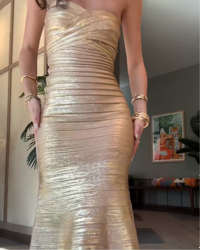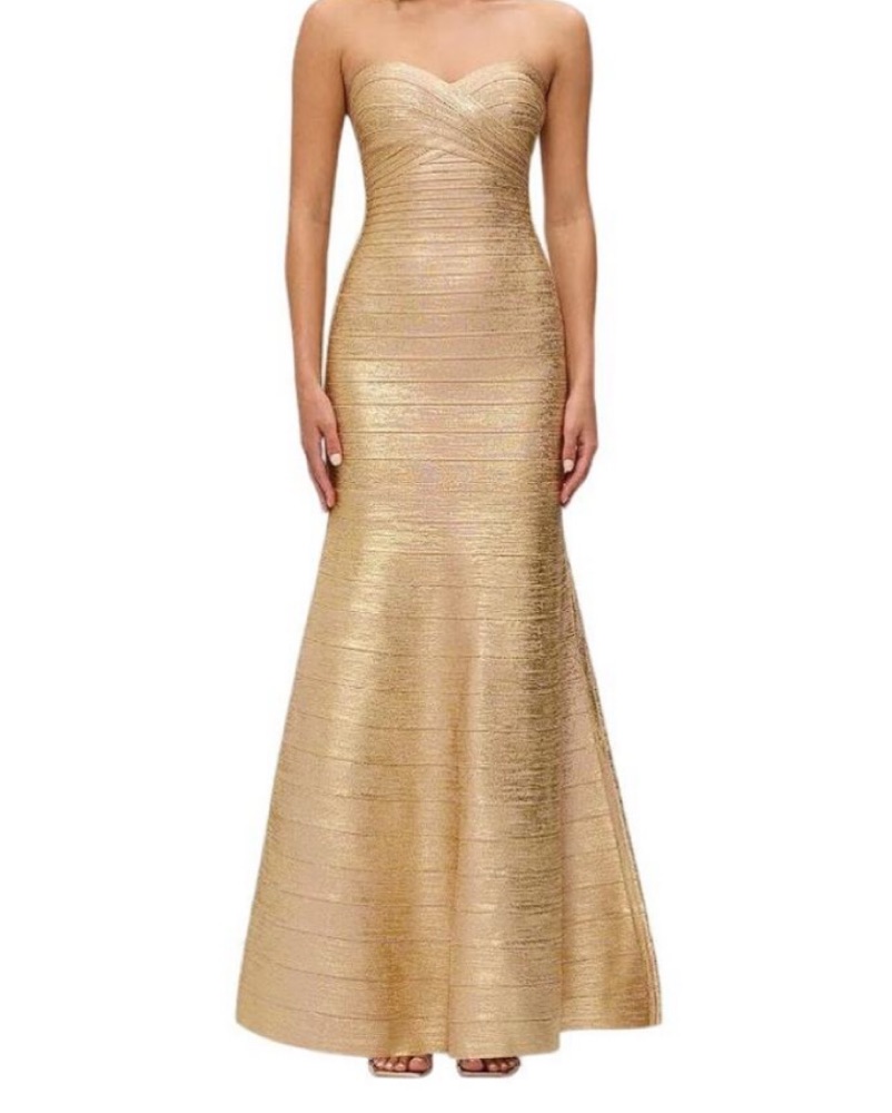Herve Leger Gold Strapless Sara Gown by Herve Leger - Pickle