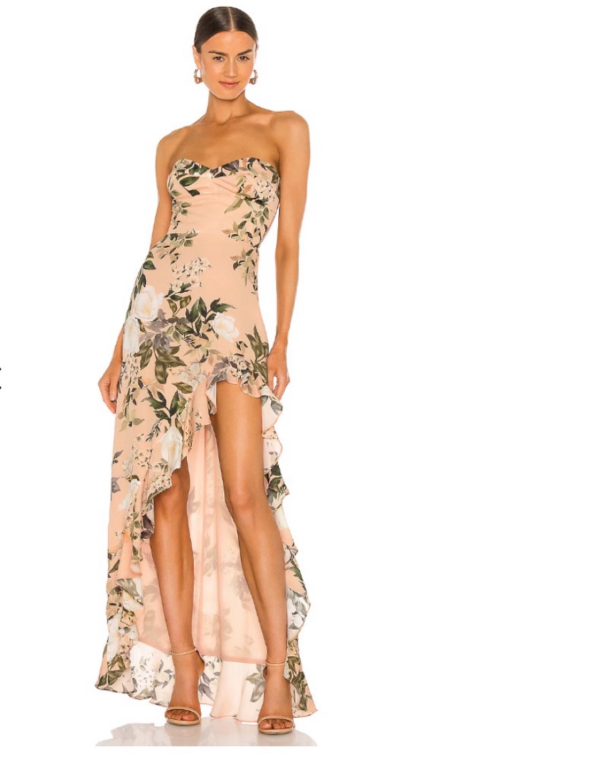 Strapless dress in Juniper Floral pattern. Worn once for a wedding!
