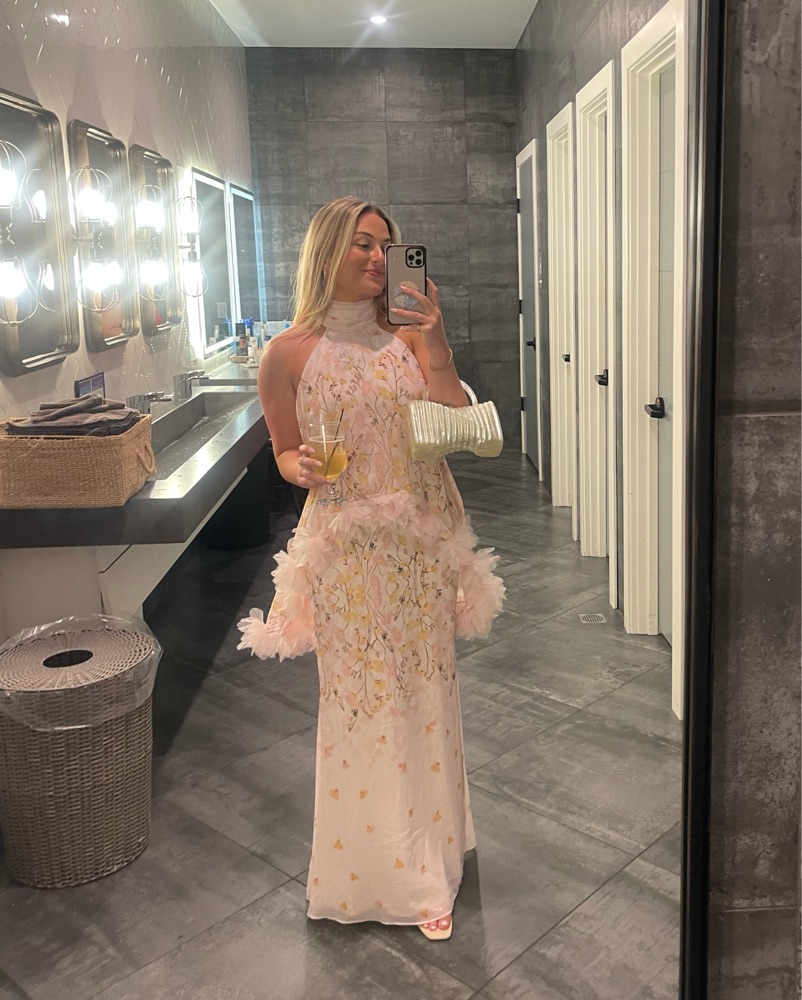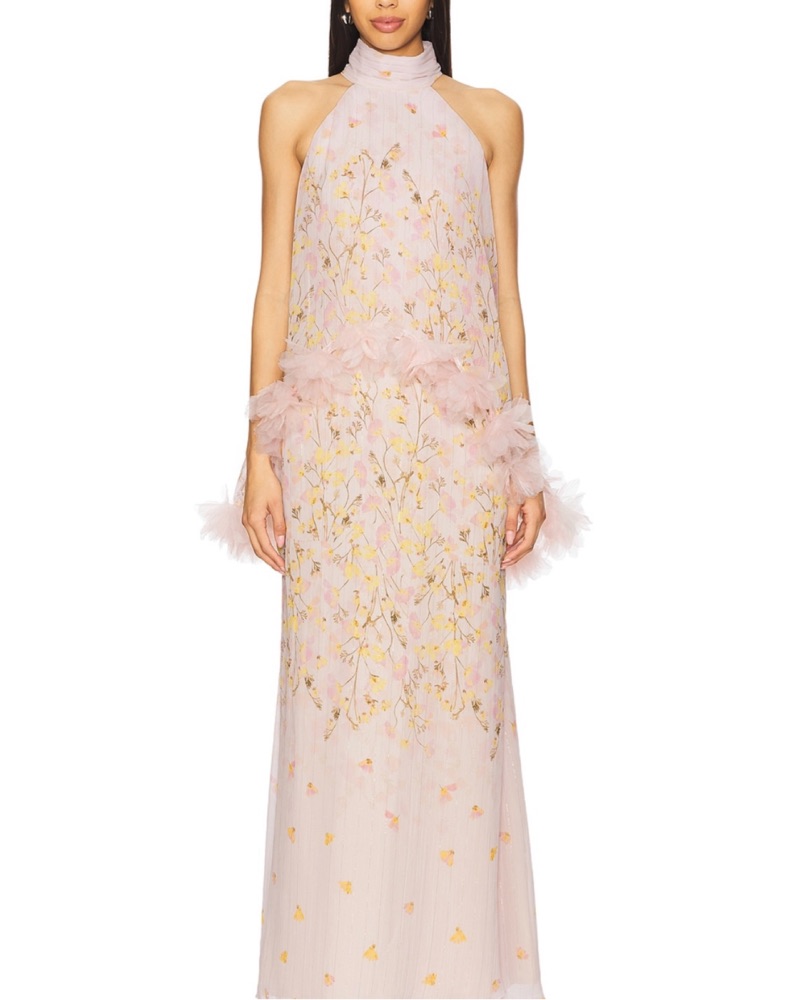 Renting my Eliatt Tulsia Floral Cape Maxi Dress in Pink from revolve (viral TikTok dress) I fluctuate between a 4-6 and this fits XS-M depending on the fit/size you want. Wore it to a wedding in June and get the most compliments I've ever received in my life.