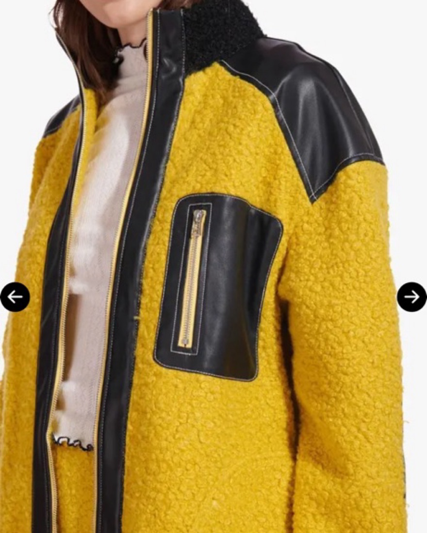 Staud Scrabble Coat | yellow shearling & black leather