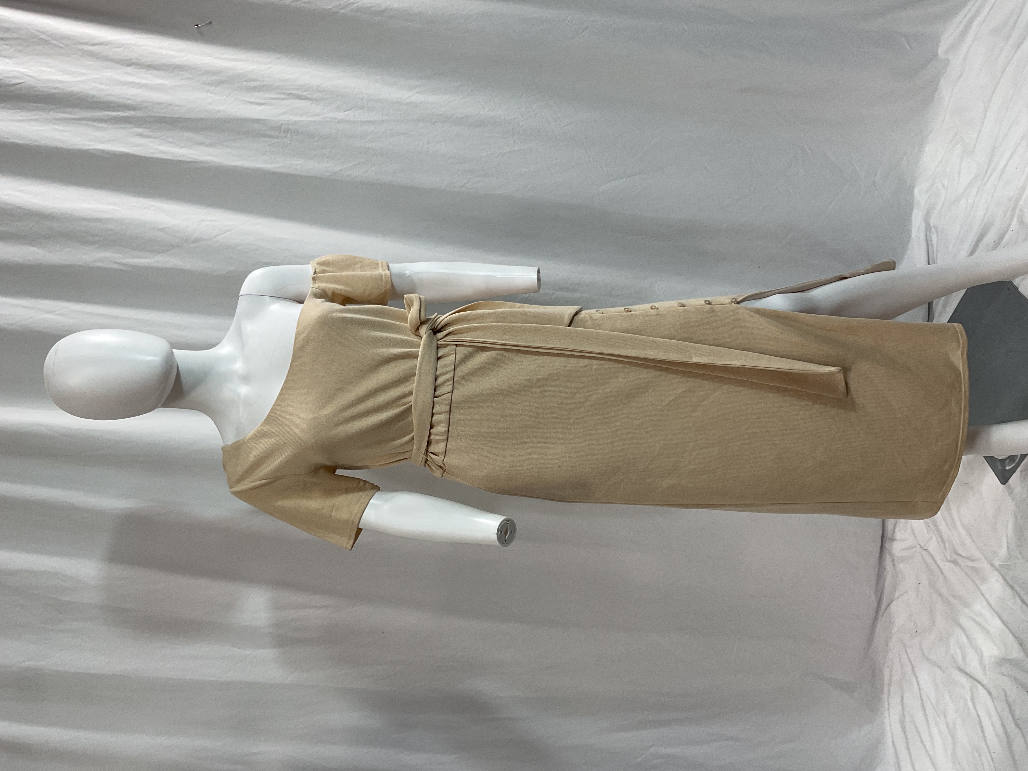 Effortlessly elegant in a versatile neutral shade. Perfect for brunch, weddings, or garden parties with its flattering midi length.